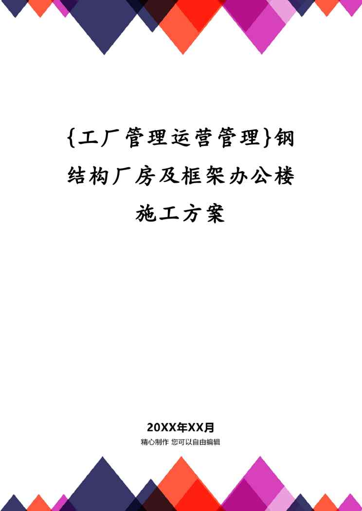 不久前,最新文档《{工厂管理运营管理}钢结构厂房及框架办公楼施工方案》全文正式在本站发布,感兴趣的用户可以下载阅读。 声明:本站所有文章,如无特殊说明或标注,均为本站原创发布。任何个人或组织,在未征得本站同意时,禁止复制、盗用、采集、发布本站内容到任何网站、书籍等各类媒体平台。如若本站内容侵犯了原著者的合法权益,可联系我们进行处理。