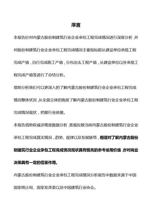 本站正式发布了《2018版内蒙古股份制建筑行业企业承包工程完成情况分析报告》文档,文档详细内容可下载阅读。 声明:本站所有文章,如无特殊说明或标注,均为本站原创发布。任何个人或组织,在未征得本站同意时,禁止复制、盗用、采集、发布本站内容到任何网站、书籍等各类媒体平台。如若本站内容侵犯了原著者的合法权益,可联系我们进行处理。