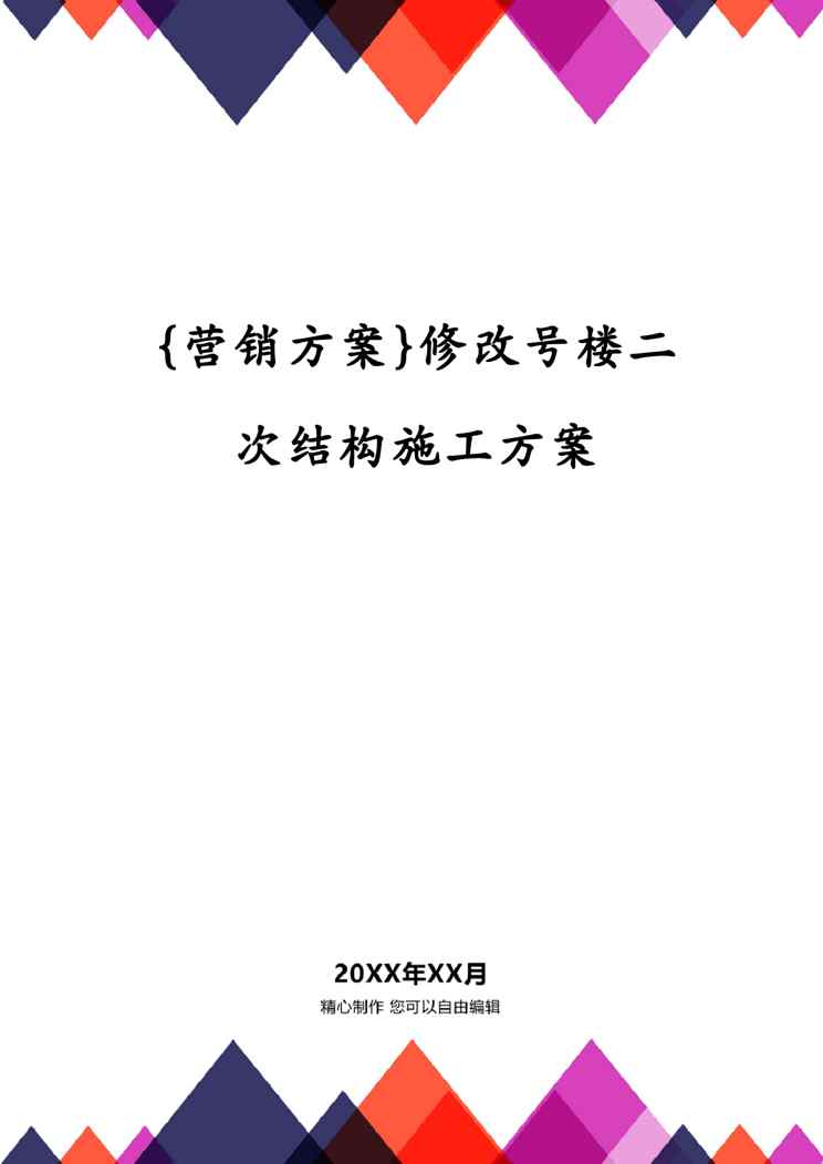 本站正式发布了《{营销方案}修改号楼二次结构施工方案》文档,文档详细内容可下载阅读。 声明:本站所有文章,如无特殊说明或标注,均为本站原创发布。任何个人或组织,在未征得本站同意时,禁止复制、盗用、采集、发布本站内容到任何网站、书籍等各类媒体平台。如若本站内容侵犯了原著者的合法权益,可联系我们进行处理。