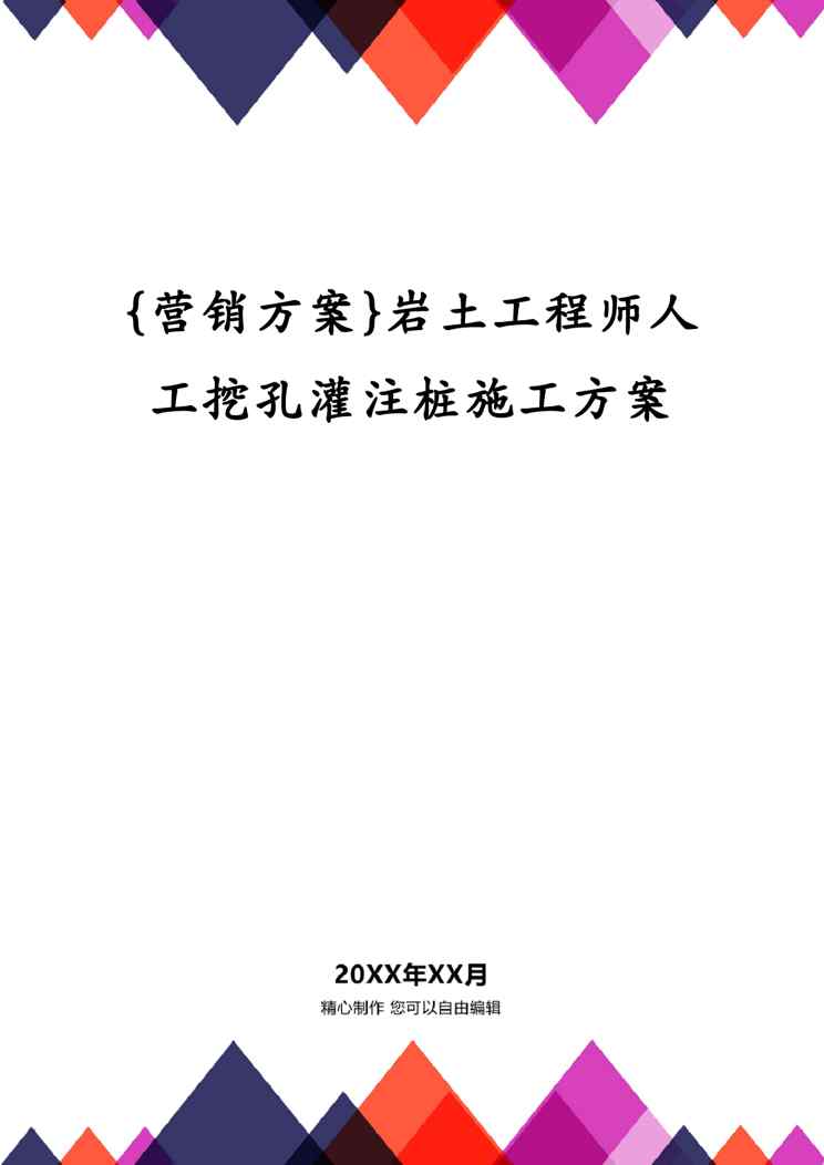 本站资深用户发布了最新的《{营销方案}岩土工程师人工挖孔灌注桩施工方案》文档,以下内容为预览,详细内容可下载阅读。 声明:本站所有文章,如无特殊说明或标注,均为本站原创发布。任何个人或组织,在未征得本站同意时,禁止复制、盗用、采集、发布本站内容到任何网站、书籍等各类媒体平台。如若本站内容侵犯了原著者的合法权益,可联系我们进行处理。