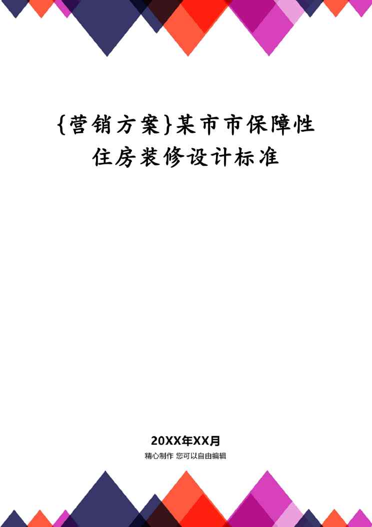 本站正式发布了《{营销方案}某市市保障性住房装修设计标准》文档,文档详细内容可下载阅读。 声明:本站所有文章,如无特殊说明或标注,均为本站原创发布。任何个人或组织,在未征得本站同意时,禁止复制、盗用、采集、发布本站内容到任何网站、书籍等各类媒体平台。如若本站内容侵犯了原著者的合法权益,可联系我们进行处理。