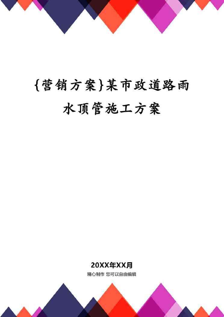 {营销方案}某市政道路雨水顶管施工方案{营销方案}某市政道路雨水顶管施工方案{营销方案}某市政道路雨水顶管施工方案{营销方案}某市政道路雨水顶管施工方案{营销方案}某市政道路雨水顶管施工方案
