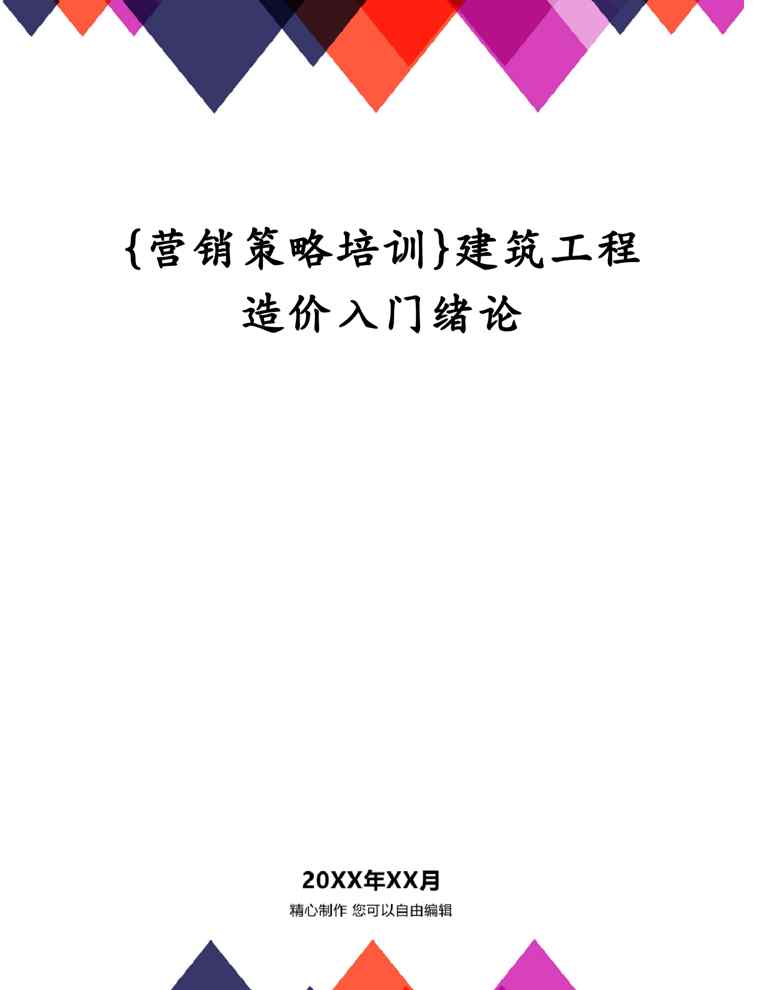 不久前,最新文档《{营销策略培训}建筑工程造价入门绪论》全文正式在本站发布,感兴趣的用户可以下载阅读。 声明:本站所有文章,如无特殊说明或标注,均为本站原创发布。任何个人或组织,在未征得本站同意时,禁止复制、盗用、采集、发布本站内容到任何网站、书籍等各类媒体平台。如若本站内容侵犯了原著者的合法权益,可联系我们进行处理。