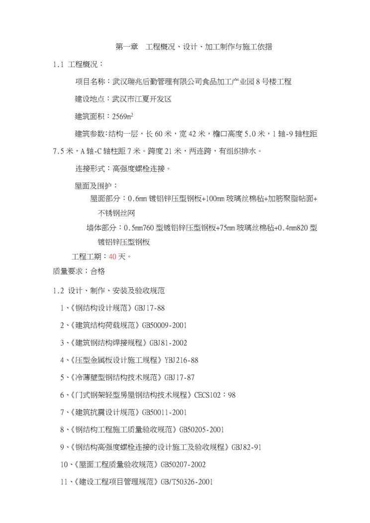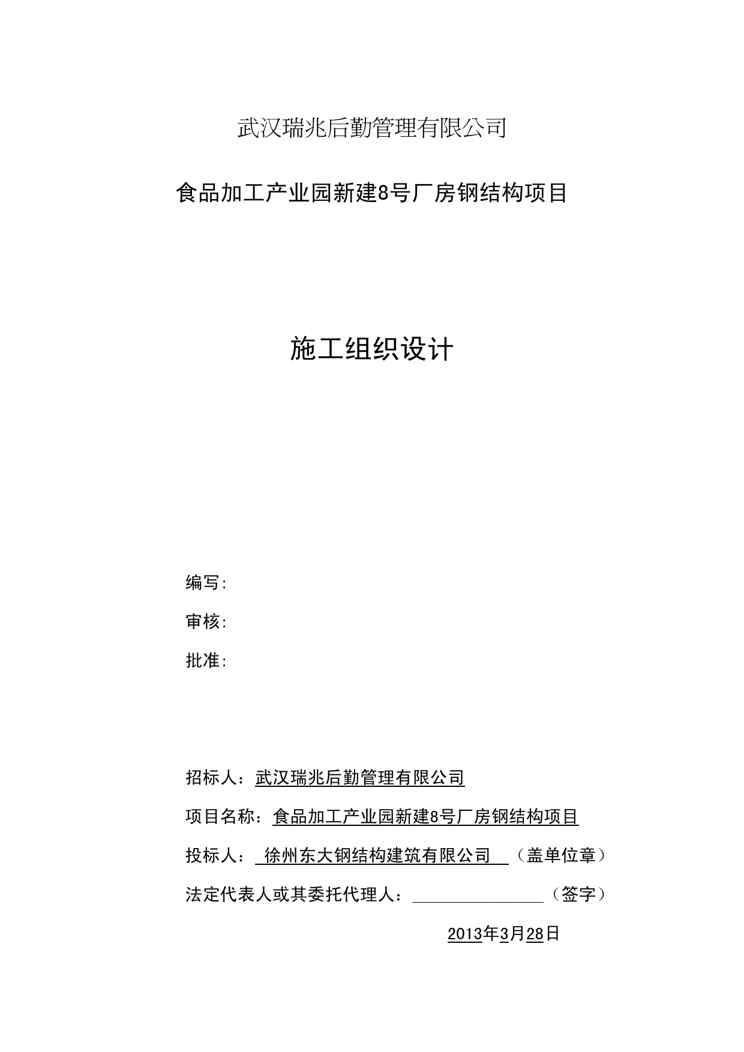 本站资深用户发布了最新的《{项目管理项目报告}食品加工产业园新建8号厂房钢结构项目施工组织设计》文档,以下内容为预览,详细内容可下载阅读。 声明:本站所有文章,如无特殊说明或标注,均为本站原创发布。任何个人或组织,在未征得本站同意时,禁止复制、盗用、采集、发布本站内容到任何网站、书籍等各类媒体平台。如若本站内容侵犯了原著者的合法权益,可联系我们进行处理。
