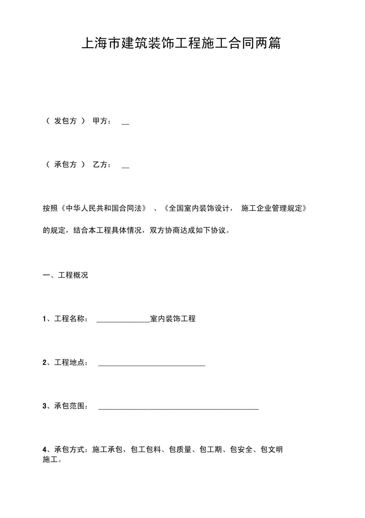本站资深用户发布了最新的《上海市建筑装饰工程施工合同两篇》文档,以下内容为预览,详细内容可下载阅读。 声明:本站所有文章,如无特殊说明或标注,均为本站原创发布。任何个人或组织,在未征得本站同意时,禁止复制、盗用、采集、发布本站内容到任何网站、书籍等各类媒体平台。如若本站内容侵犯了原著者的合法权益,可联系我们进行处理。