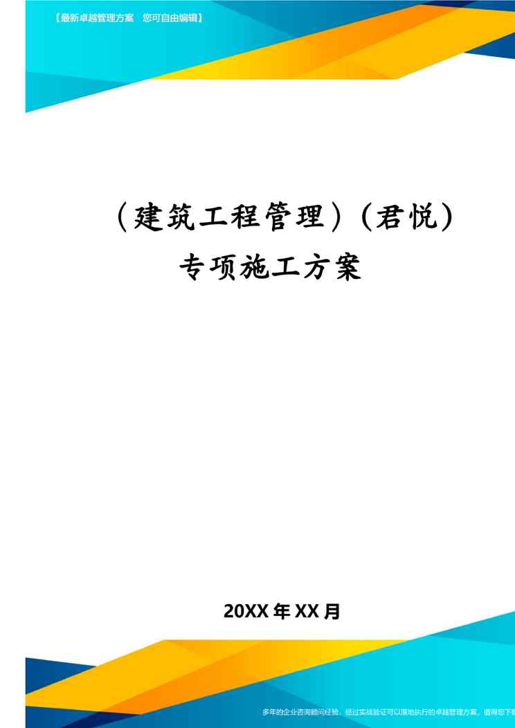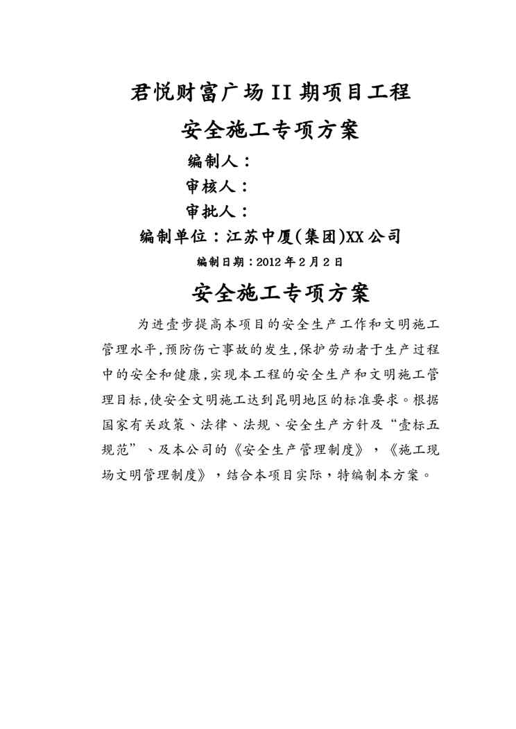 本站资深用户发布了最新的《(建筑工程管理)(君悦)专项施工方案》文档,以下内容为预览,详细内容可下载阅读。 声明:本站所有文章,如无特殊说明或标注,均为本站原创发布。任何个人或组织,在未征得本站同意时,禁止复制、盗用、采集、发布本站内容到任何网站、书籍等各类媒体平台。如若本站内容侵犯了原著者的合法权益,可联系我们进行处理。