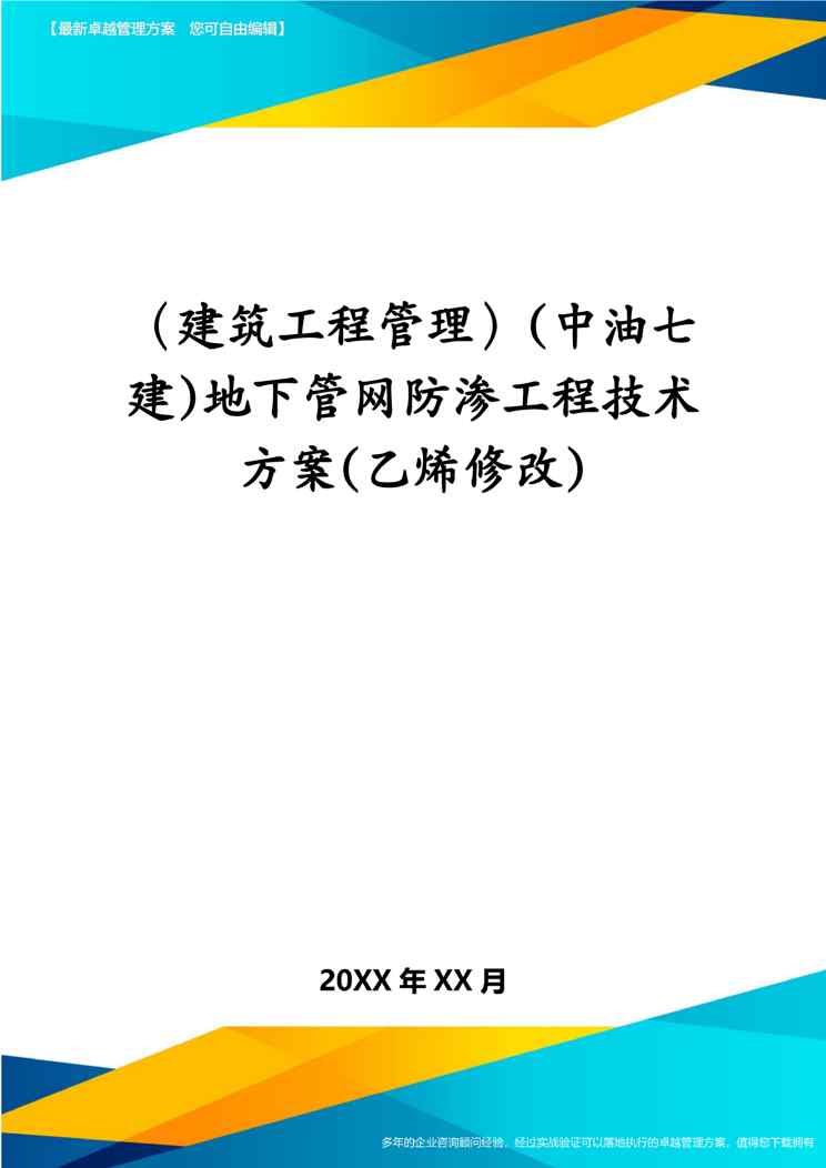 不久前,最新文档《(建筑工程管理)(中油七建)地下管网防渗工程技术方案(乙烯修改)》全文正式在本站发布,感兴趣的用户可以下载阅读。 声明:本站所有文章,如无特殊说明或标注,均为本站原创发布。任何个人或组织,在未征得本站同意时,禁止复制、盗用、采集、发布本站内容到任何网站、书籍等各类媒体平台。如若本站内容侵犯了原著者的合法权益,可联系我们进行处理。
