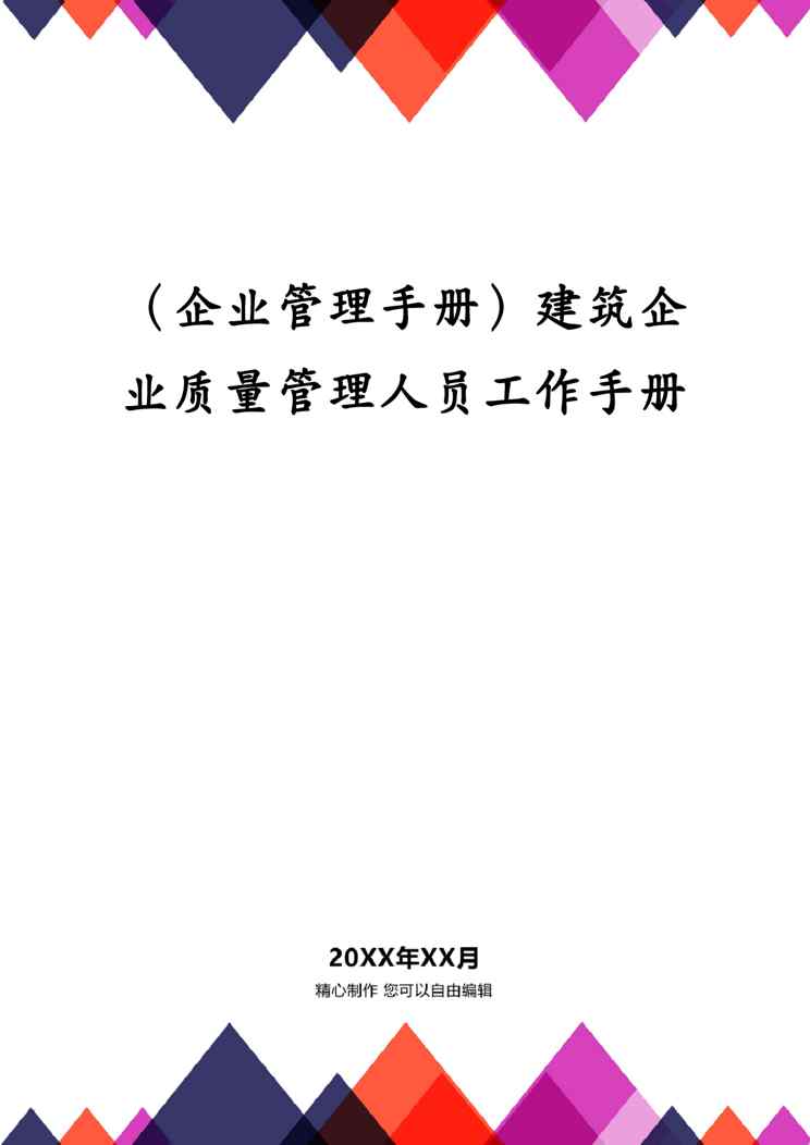 本站正式发布了《企业管理手册建筑企业质量管理人员工作手册》文档,文档详细内容可下载阅读。 声明:本站所有文章,如无特殊说明或标注,均为本站原创发布。任何个人或组织,在未征得本站同意时,禁止复制、盗用、采集、发布本站内容到任何网站、书籍等各类媒体平台。如若本站内容侵犯了原著者的合法权益,可联系我们进行处理。