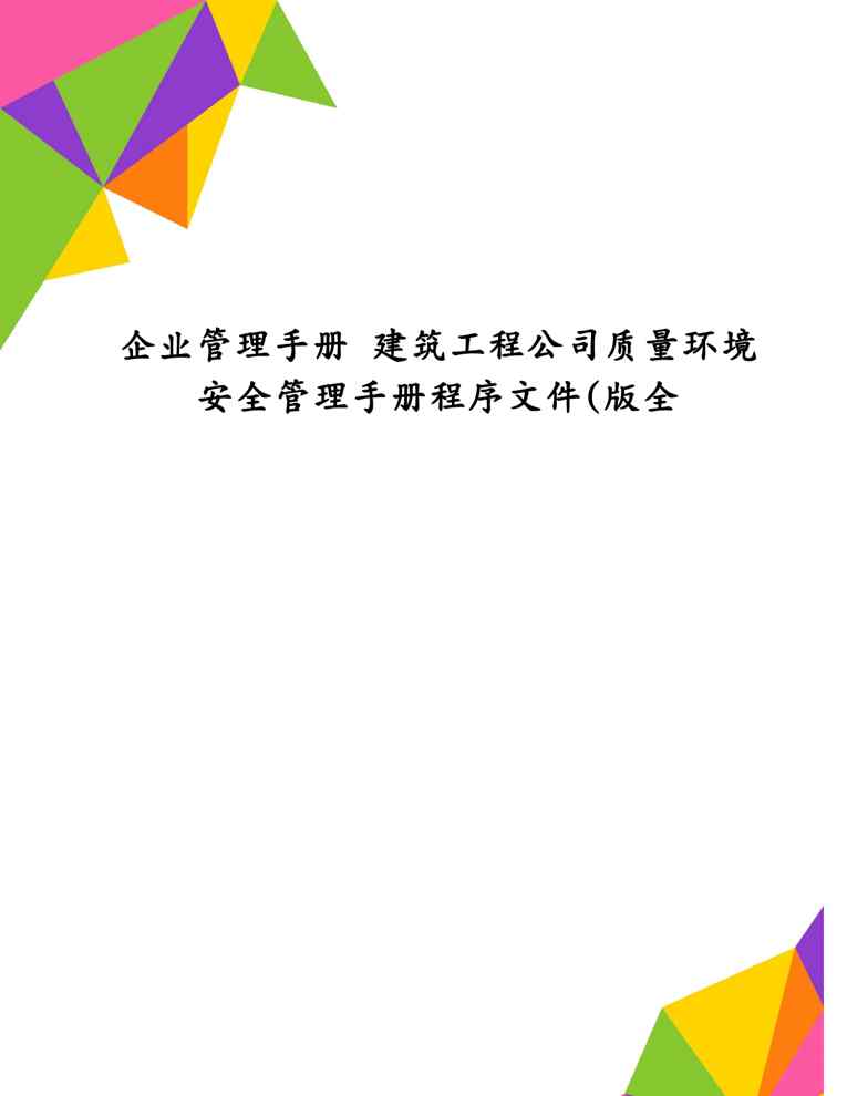企业管理手册 建筑工程公司质量环境安全管理手册程序文件(版全企业管理手册 建筑工程公司质量环境安全管理手册程序文件(版全企业管理手册 建筑工程公司质量环境安全管理手册程序文件(版全企业管理手册 建筑工程公司质量环境安全管理手册程序文件(版全企业管理手册 建筑工程公司质量环境安全管理手册程序文件(版全