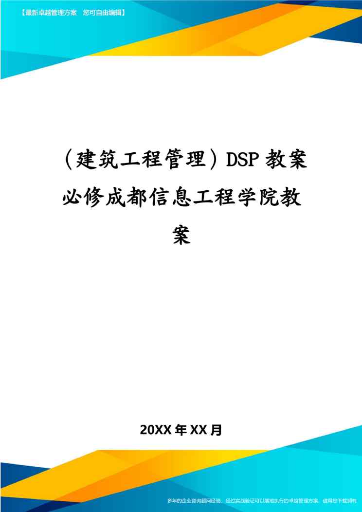 本站正式发布了《(建筑工程管理)DSP教案必修成都信息工程学院教案》文档,文档详细内容可下载阅读。 声明:本站所有文章,如无特殊说明或标注,均为本站原创发布。任何个人或组织,在未征得本站同意时,禁止复制、盗用、采集、发布本站内容到任何网站、书籍等各类媒体平台。如若本站内容侵犯了原著者的合法权益,可联系我们进行处理。