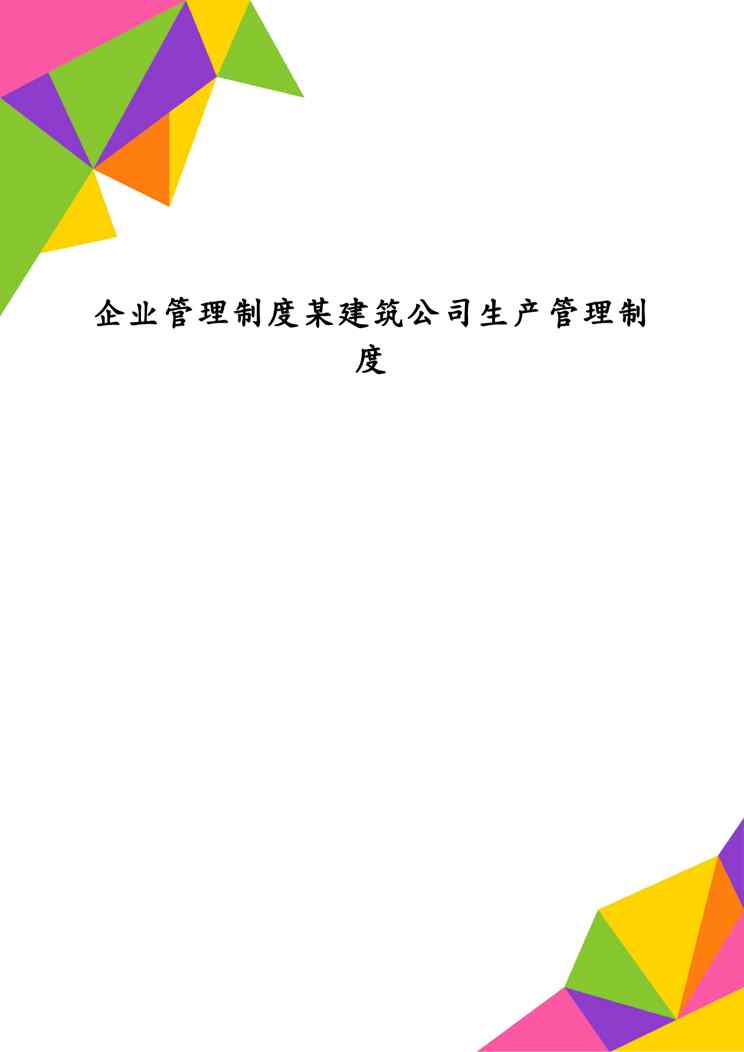 本站资深用户发布了最新的《企业管理制度某建筑公司生产管理制度》文档,以下内容为预览,详细内容可下载阅读。 声明:本站所有文章,如无特殊说明或标注,均为本站原创发布。任何个人或组织,在未征得本站同意时,禁止复制、盗用、采集、发布本站内容到任何网站、书籍等各类媒体平台。如若本站内容侵犯了原著者的合法权益,可联系我们进行处理。