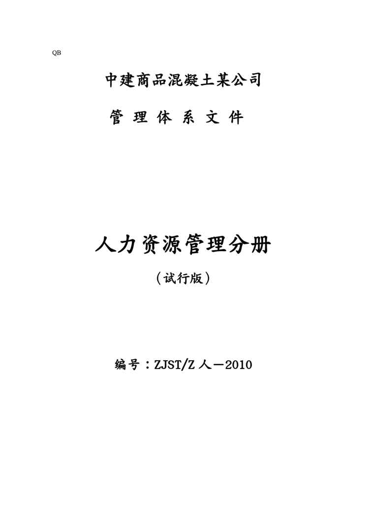 本站资深用户发布了最新的《人力资源管理某混凝土有限公司人力资源管理分册》文档,以下内容为预览,详细内容可下载阅读。 声明:本站所有文章,如无特殊说明或标注,均为本站原创发布。任何个人或组织,在未征得本站同意时,禁止复制、盗用、采集、发布本站内容到任何网站、书籍等各类媒体平台。如若本站内容侵犯了原著者的合法权益,可联系我们进行处理。