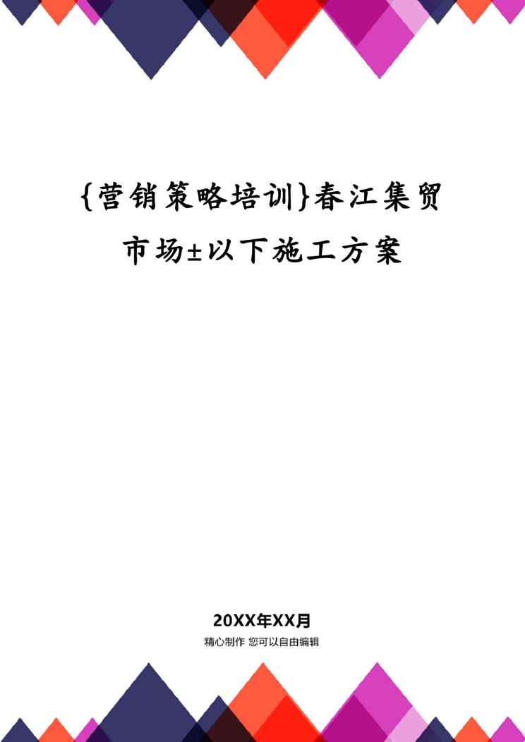 本站正式发布了《{营销策略培训}春江集贸市场±以下施工方案》文档,文档详细内容可下载阅读。 声明:本站所有文章,如无特殊说明或标注,均为本站原创发布。任何个人或组织,在未征得本站同意时,禁止复制、盗用、采集、发布本站内容到任何网站、书籍等各类媒体平台。如若本站内容侵犯了原著者的合法权益,可联系我们进行处理。