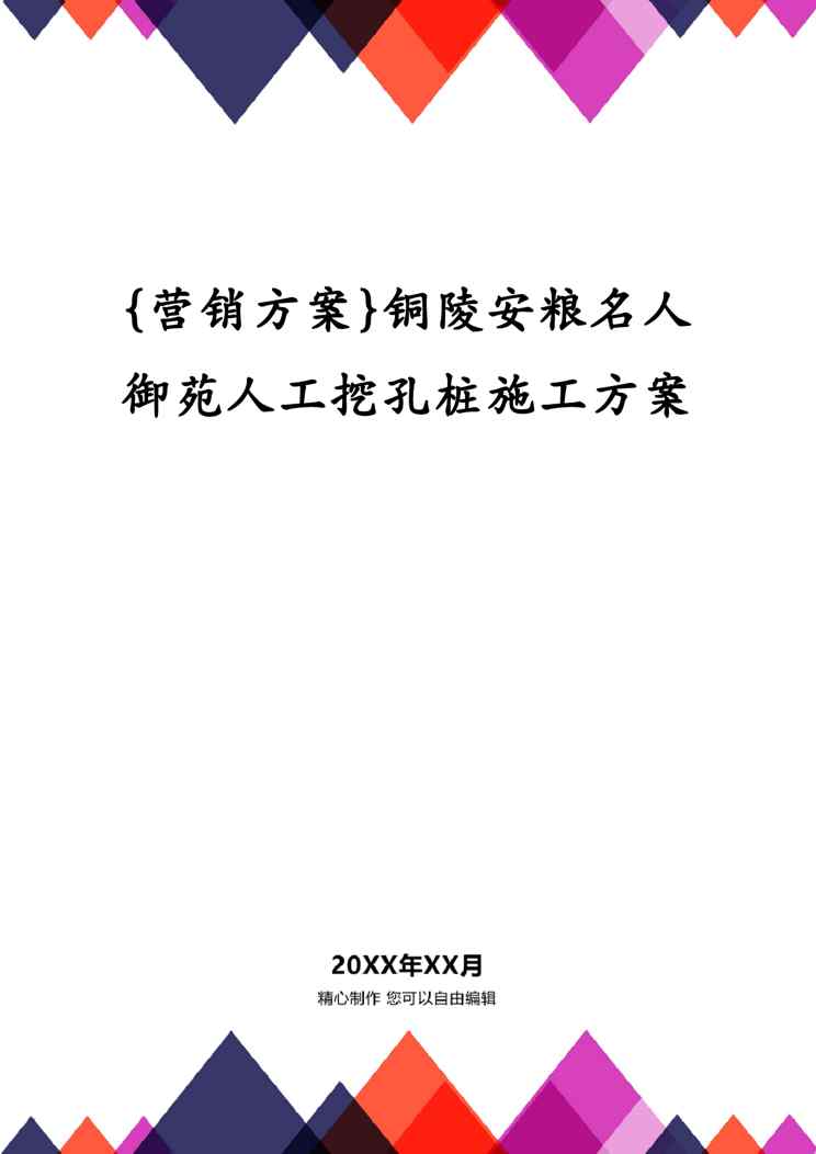 本站资深用户发布了最新的《{营销方案}铜陵安粮名人御苑人工挖孔桩施工方案》文档,以下内容为预览,详细内容可下载阅读。 声明:本站所有文章,如无特殊说明或标注,均为本站原创发布。任何个人或组织,在未征得本站同意时,禁止复制、盗用、采集、发布本站内容到任何网站、书籍等各类媒体平台。如若本站内容侵犯了原著者的合法权益,可联系我们进行处理。