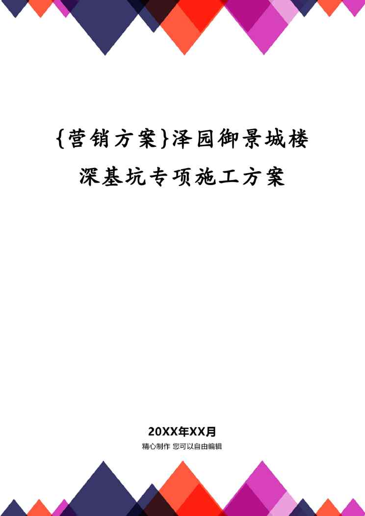 本站正式发布了《{营销方案}泽园御景城楼深基坑专项施工方案》文档,文档详细内容可下载阅读。 声明:本站所有文章,如无特殊说明或标注,均为本站原创发布。任何个人或组织,在未征得本站同意时,禁止复制、盗用、采集、发布本站内容到任何网站、书籍等各类媒体平台。如若本站内容侵犯了原著者的合法权益,可联系我们进行处理。