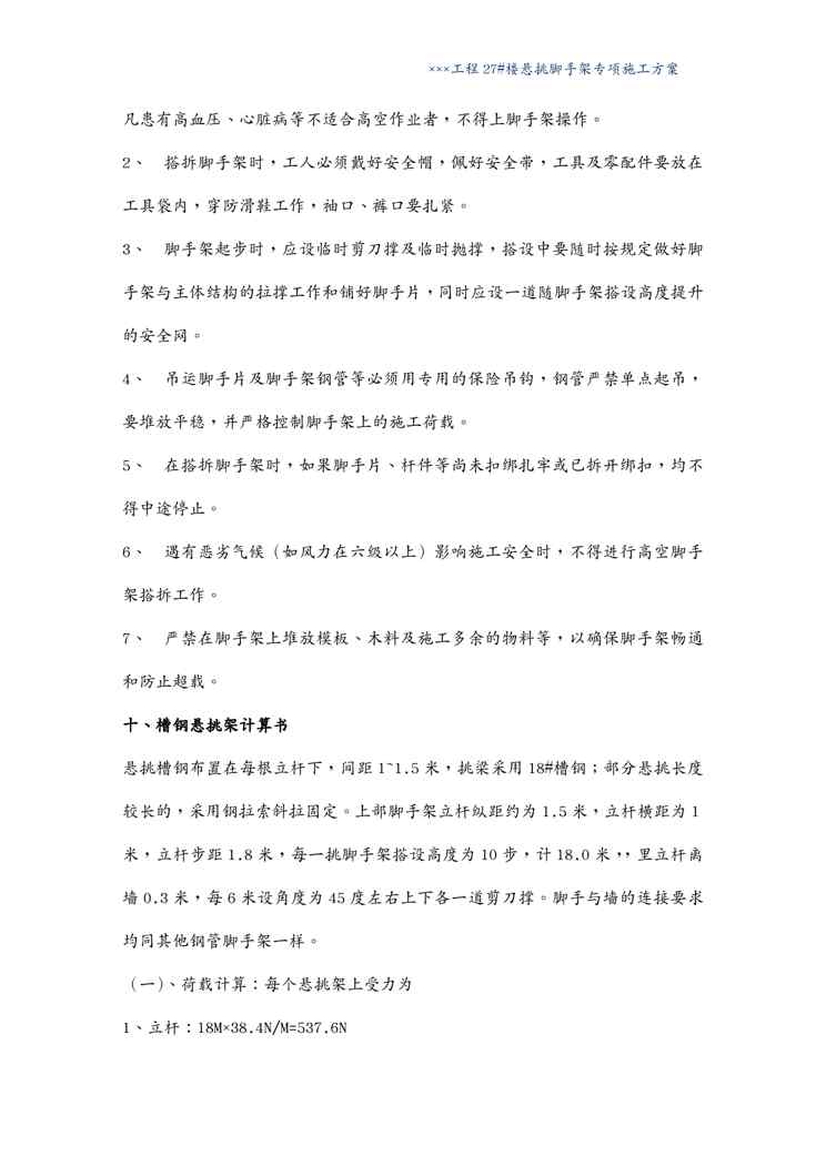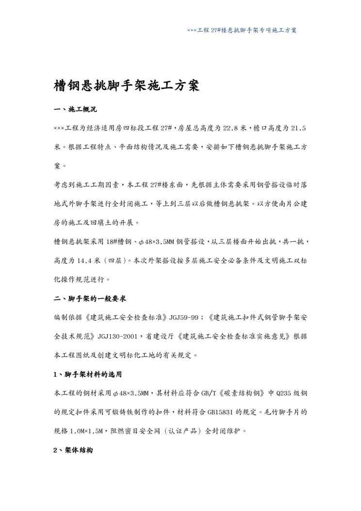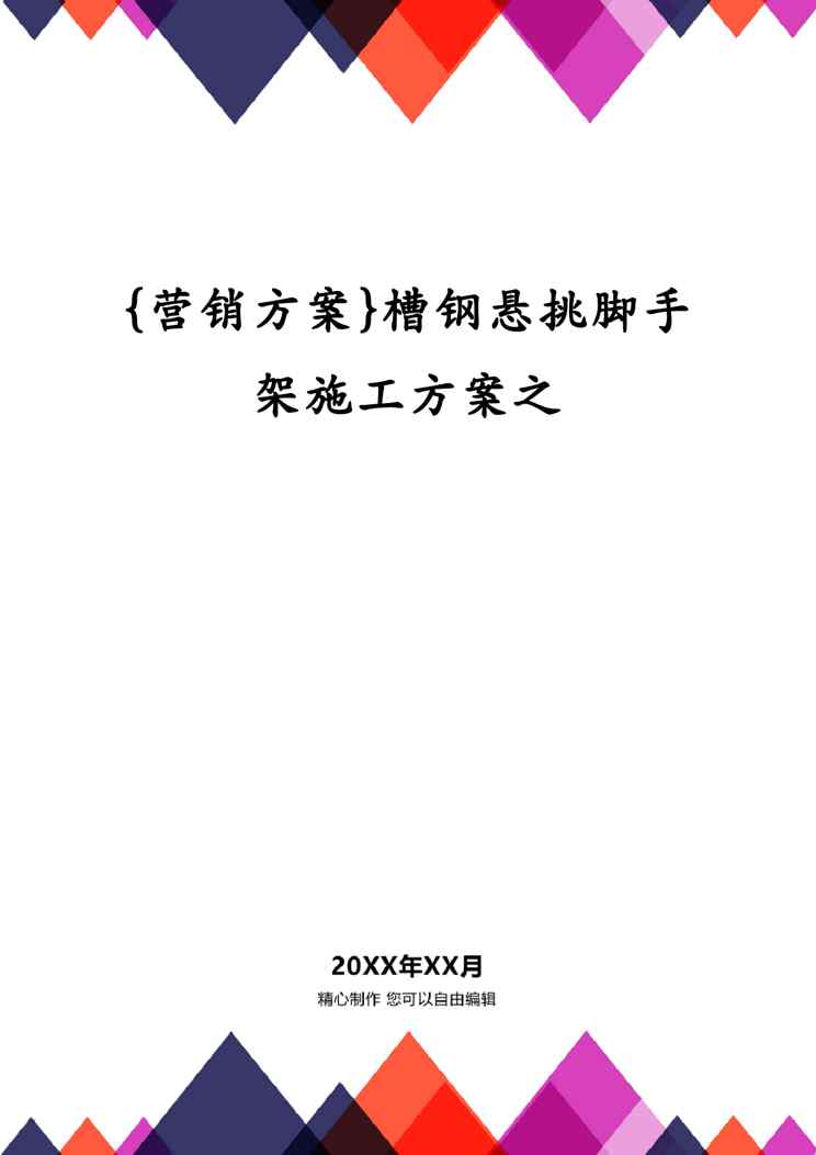 本站资深用户发布了最新的《{营销方案}槽钢悬挑脚手架施工方案之》文档,以下内容为预览,详细内容可下载阅读。 声明:本站所有文章,如无特殊说明或标注,均为本站原创发布。任何个人或组织,在未征得本站同意时,禁止复制、盗用、采集、发布本站内容到任何网站、书籍等各类媒体平台。如若本站内容侵犯了原著者的合法权益,可联系我们进行处理。