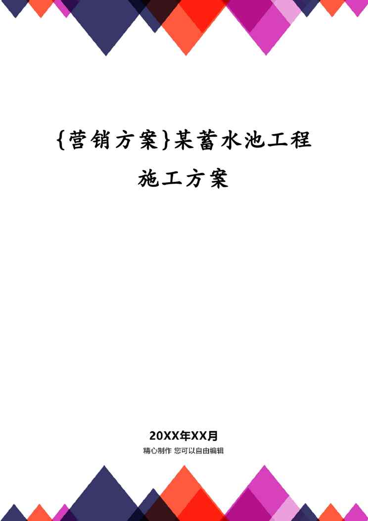 本站资深用户发布了最新的《{营销方案}某蓄水池工程施工方案》文档,以下内容为预览,详细内容可下载阅读。 声明:本站所有文章,如无特殊说明或标注,均为本站原创发布。任何个人或组织,在未征得本站同意时,禁止复制、盗用、采集、发布本站内容到任何网站、书籍等各类媒体平台。如若本站内容侵犯了原著者的合法权益,可联系我们进行处理。