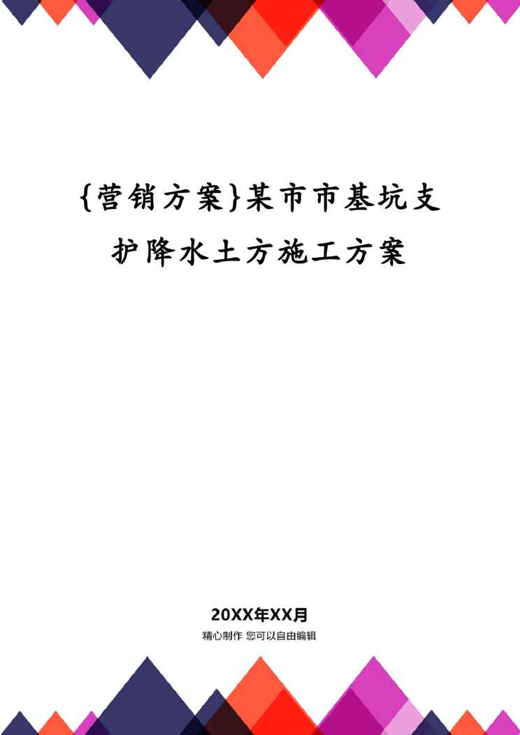 不久前,最新文档《{营销方案}某市市基坑支护降水土方施工方案》全文正式在本站发布,感兴趣的用户可以下载阅读。 声明:本站所有文章,如无特殊说明或标注,均为本站原创发布。任何个人或组织,在未征得本站同意时,禁止复制、盗用、采集、发布本站内容到任何网站、书籍等各类媒体平台。如若本站内容侵犯了原著者的合法权益,可联系我们进行处理。