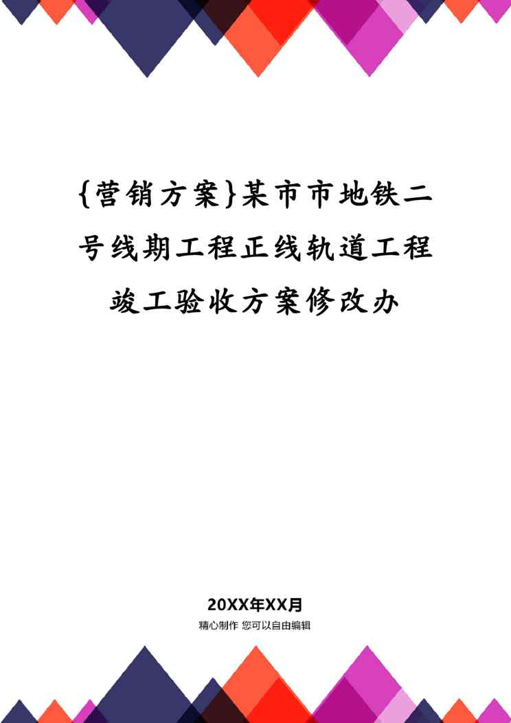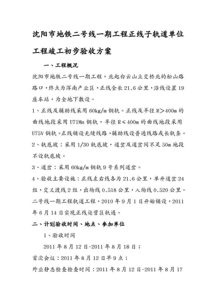 本站正式发布了《{营销方案}某市市地铁二号线期工程正线轨道工程竣工验收方案修改办》文档,文档详细内容可下载阅读。 声明:本站所有文章,如无特殊说明或标注,均为本站原创发布。任何个人或组织,在未征得本站同意时,禁止复制、盗用、采集、发布本站内容到任何网站、书籍等各类媒体平台。如若本站内容侵犯了原著者的合法权益,可联系我们进行处理。