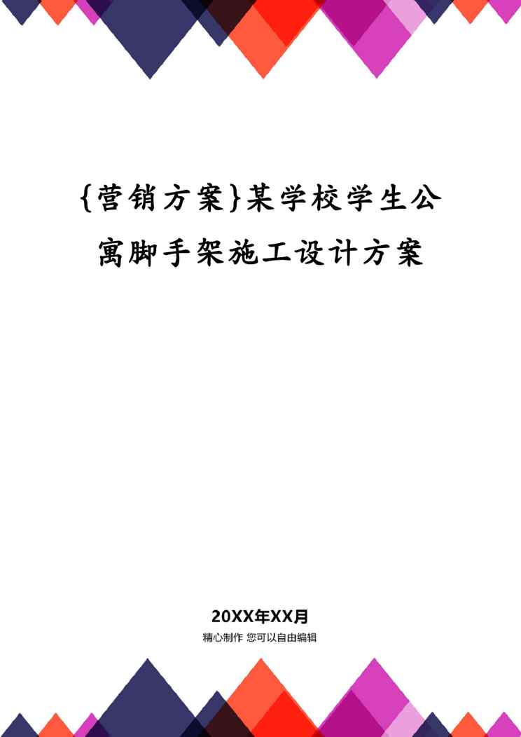 本站资深用户发布了最新的《{营销方案}某学校学生公寓脚手架施工设计方案》文档,以下内容为预览,详细内容可下载阅读。 声明:本站所有文章,如无特殊说明或标注,均为本站原创发布。任何个人或组织,在未征得本站同意时,禁止复制、盗用、采集、发布本站内容到任何网站、书籍等各类媒体平台。如若本站内容侵犯了原著者的合法权益,可联系我们进行处理。