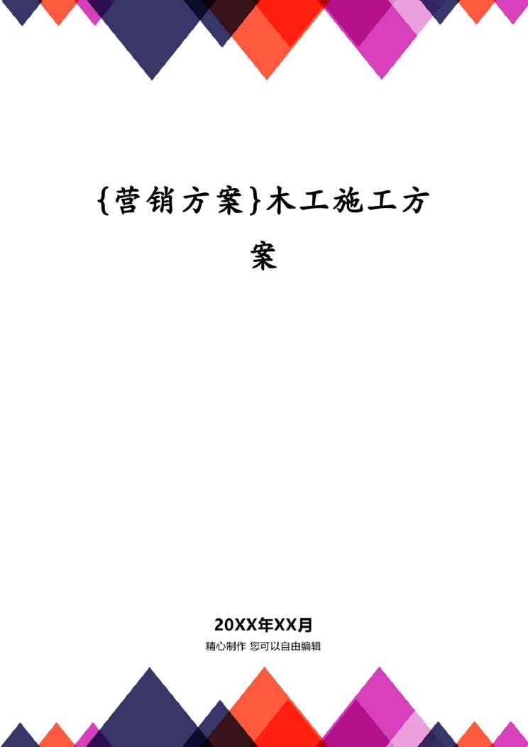 不久前,最新文档《{营销方案}木工施工方案》全文正式在本站发布,感兴趣的用户可以下载阅读。 声明:本站所有文章,如无特殊说明或标注,均为本站原创发布。任何个人或组织,在未征得本站同意时,禁止复制、盗用、采集、发布本站内容到任何网站、书籍等各类媒体平台。如若本站内容侵犯了原著者的合法权益,可联系我们进行处理。