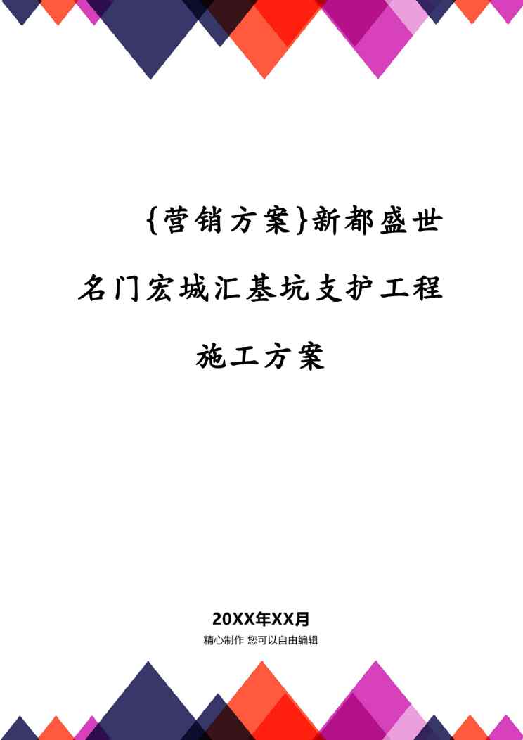不久前,最新文档《{营销方案}新都盛世名门宏城汇基坑支护工程施工方案》全文正式在本站发布,感兴趣的用户可以下载阅读。 声明:本站所有文章,如无特殊说明或标注,均为本站原创发布。任何个人或组织,在未征得本站同意时,禁止复制、盗用、采集、发布本站内容到任何网站、书籍等各类媒体平台。如若本站内容侵犯了原著者的合法权益,可联系我们进行处理。