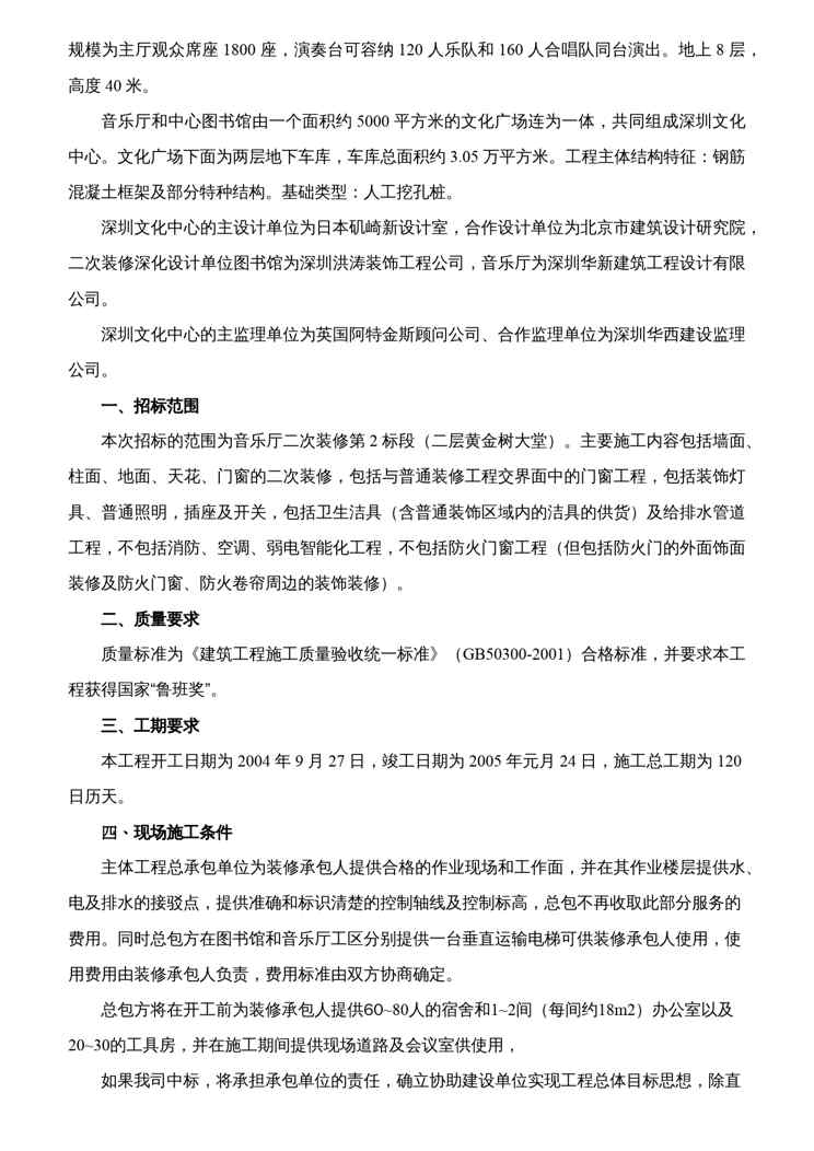 不久前,最新文档《企业管理某市文化中心音乐厅二次装修工程第2标段》全文正式在本站发布,感兴趣的用户可以下载阅读。 声明:本站所有文章,如无特殊说明或标注,均为本站原创发布。任何个人或组织,在未征得本站同意时,禁止复制、盗用、采集、发布本站内容到任何网站、书籍等各类媒体平台。如若本站内容侵犯了原著者的合法权益,可联系我们进行处理。
