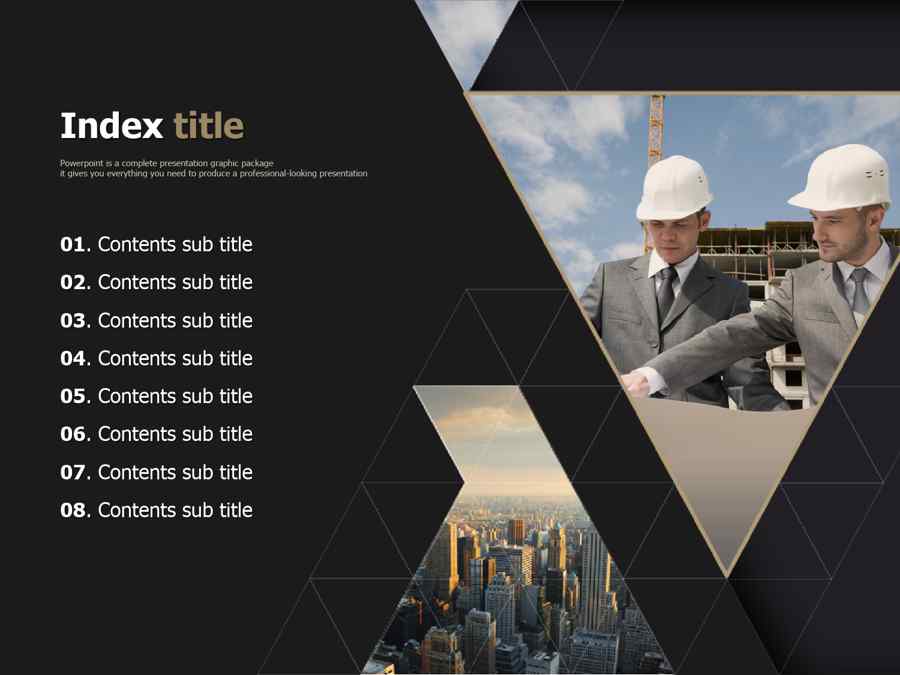不久前,最新文档《三角形创意拼图建筑行业工作汇报ppt模板》全文正式在本站发布,感兴趣的用户可以下载阅读。 声明:本站所有文章,如无特殊说明或标注,均为本站原创发布。任何个人或组织,在未征得本站同意时,禁止复制、盗用、采集、发布本站内容到任何网站、书籍等各类媒体平台。如若本站内容侵犯了原著者的合法权益,可联系我们进行处理。