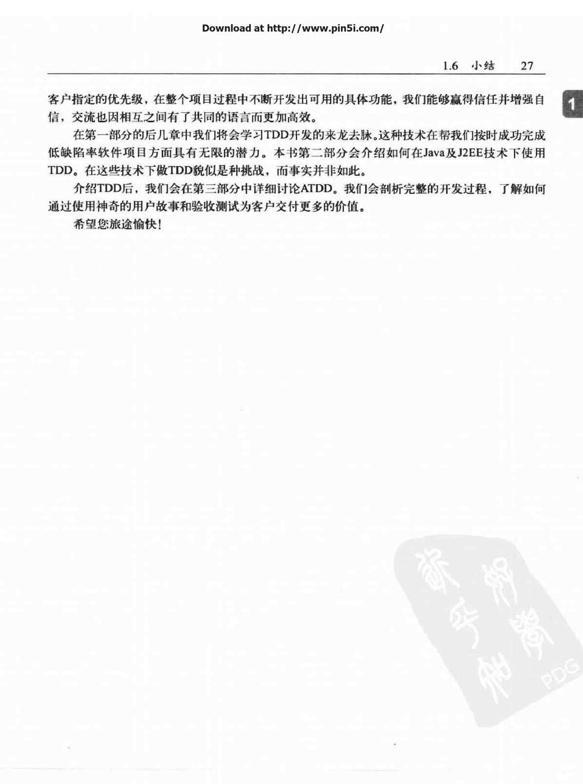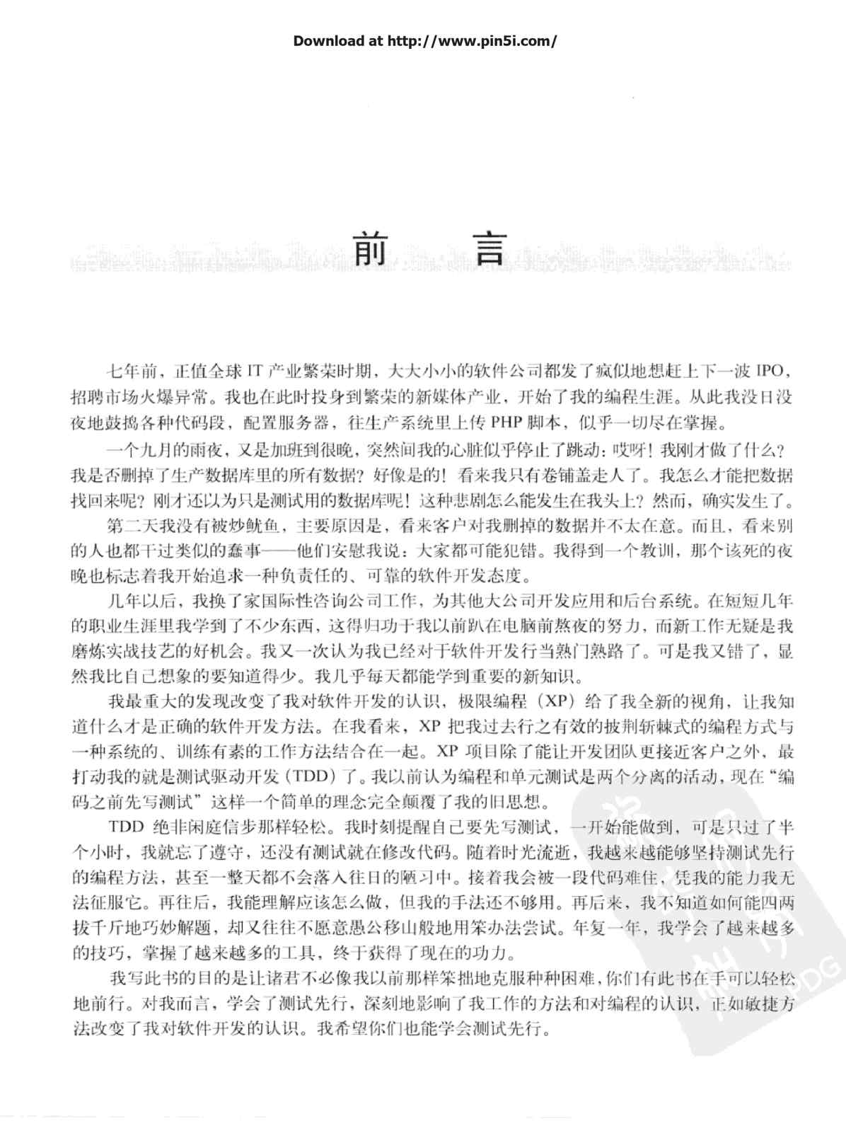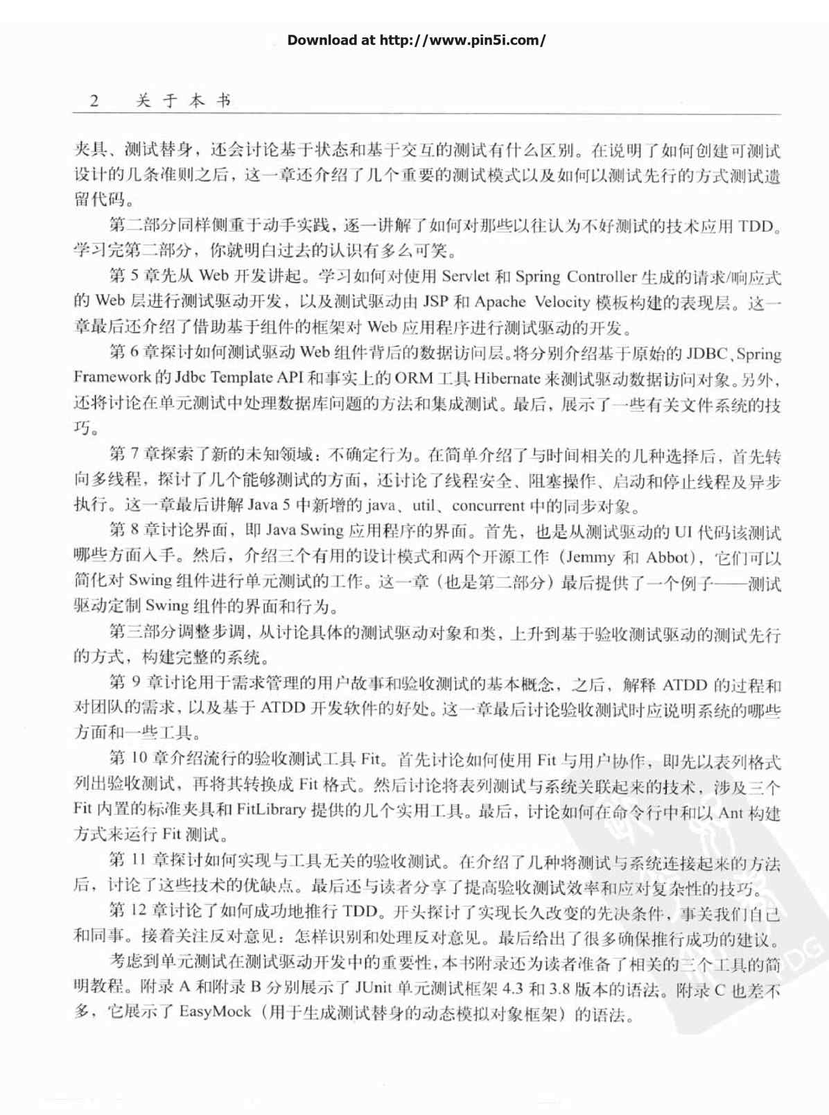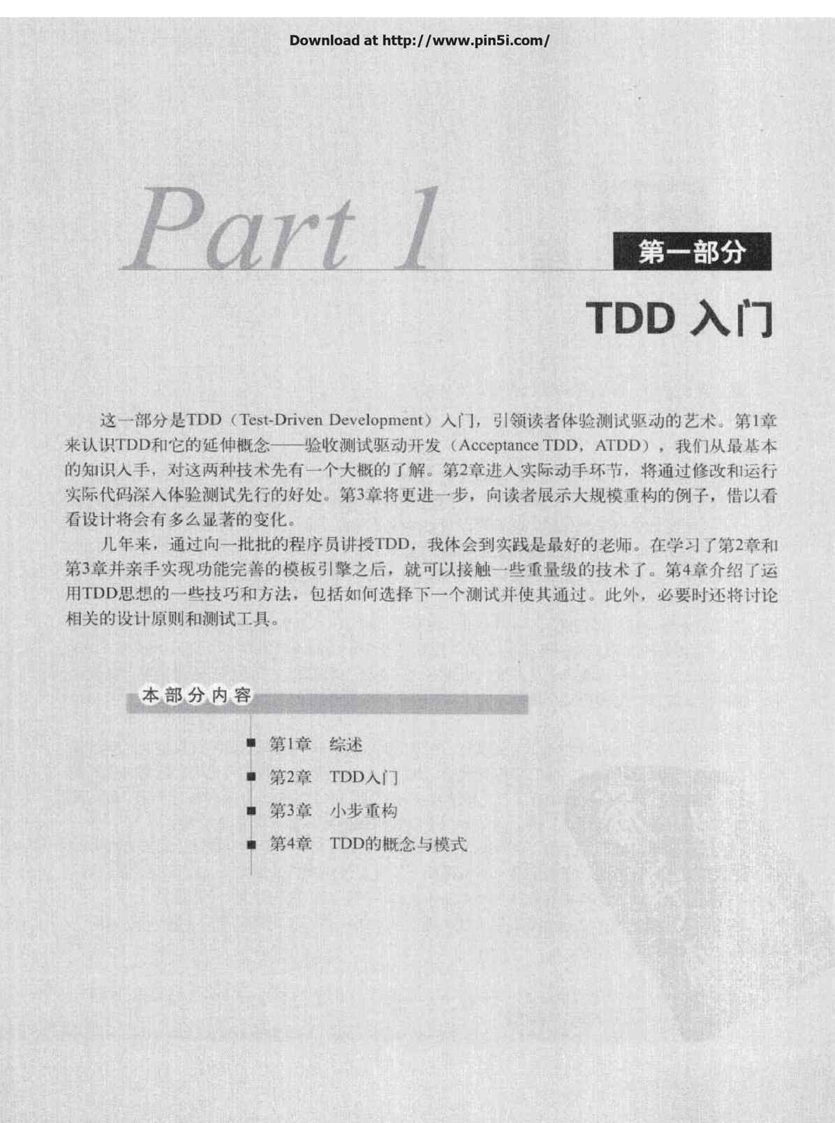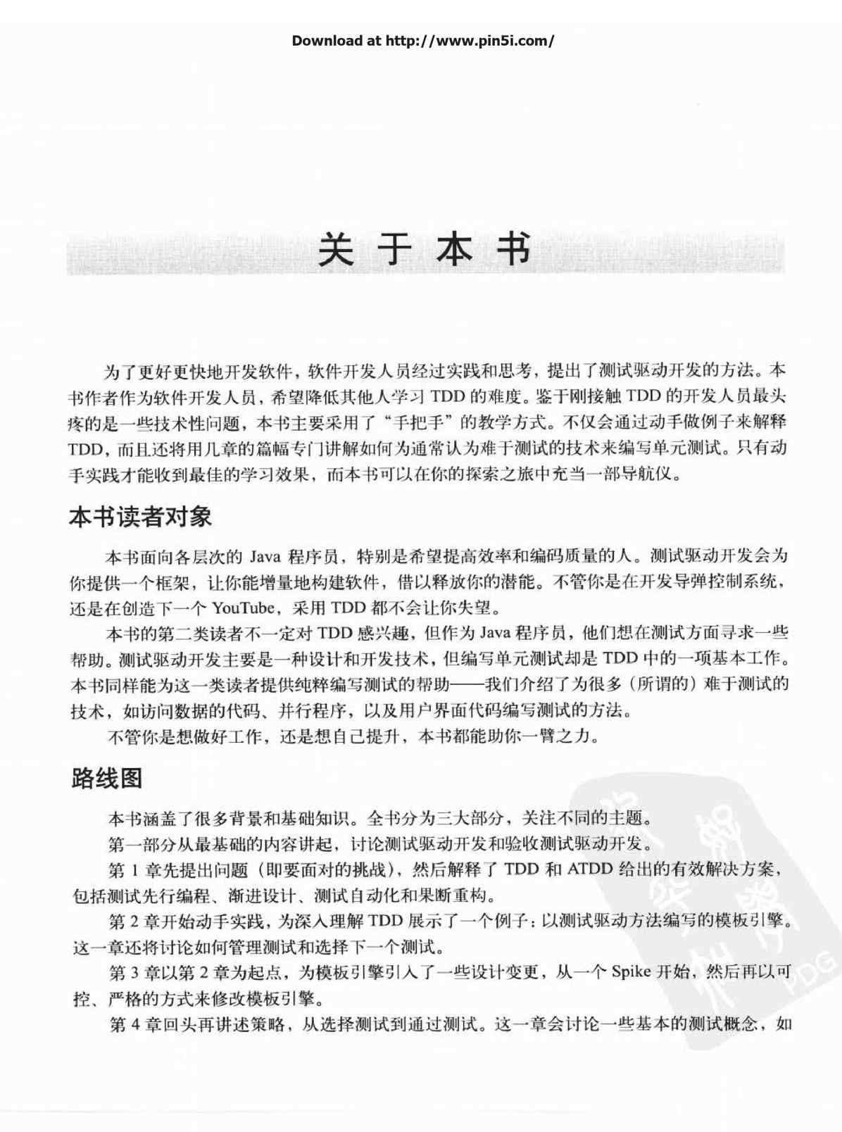 本站资深用户发布了最新的《测试驱动开发的艺术》文档,以下内容为预览,详细内容可下载阅读。 声明:本站所有文章,如无特殊说明或标注,均为本站原创发布。任何个人或组织,在未征得本站同意时,禁止复制、盗用、采集、发布本站内容到任何网站、书籍等各类媒体平台。如若本站内容侵犯了原著者的合法权益,可联系我们进行处理。