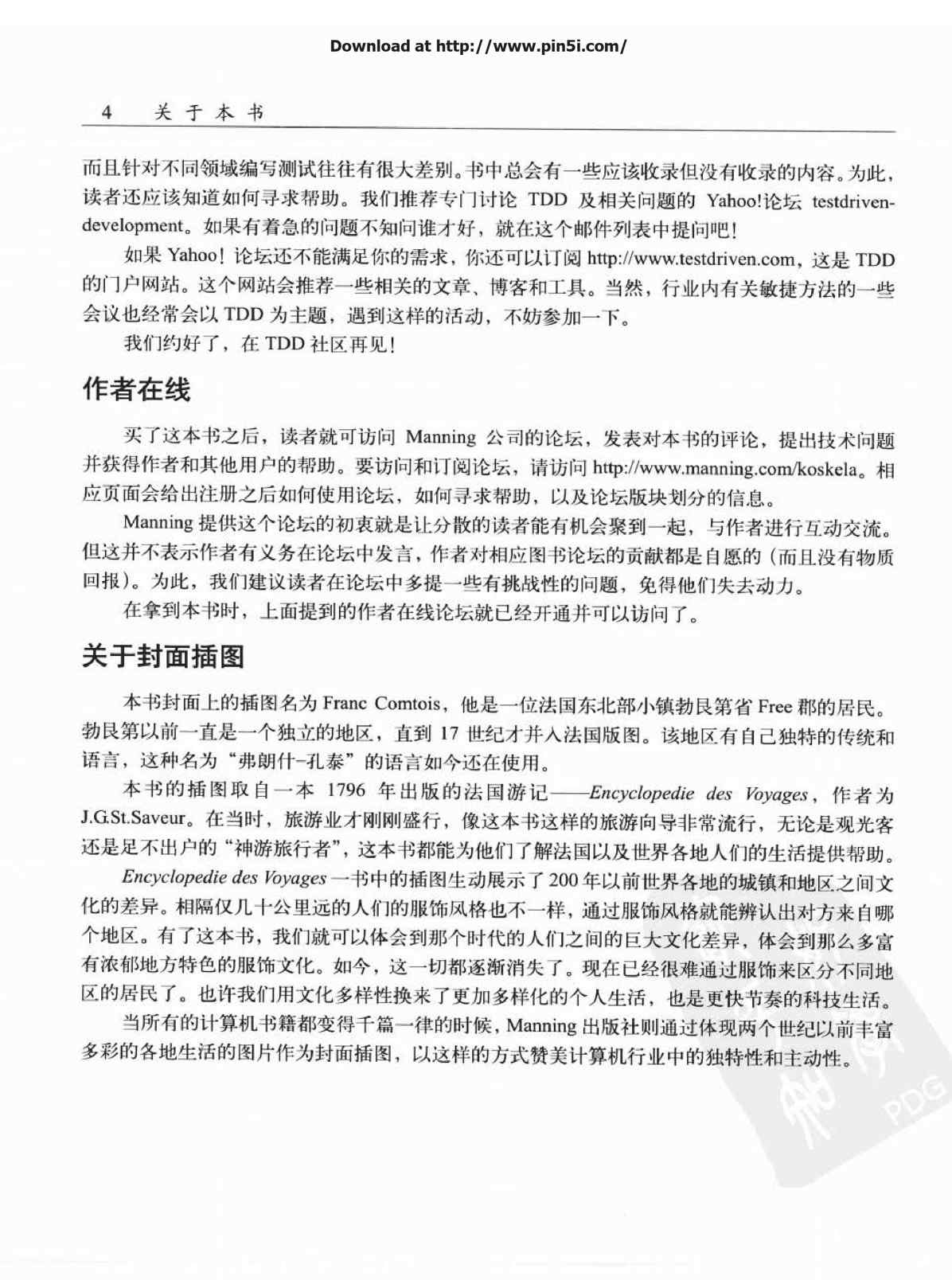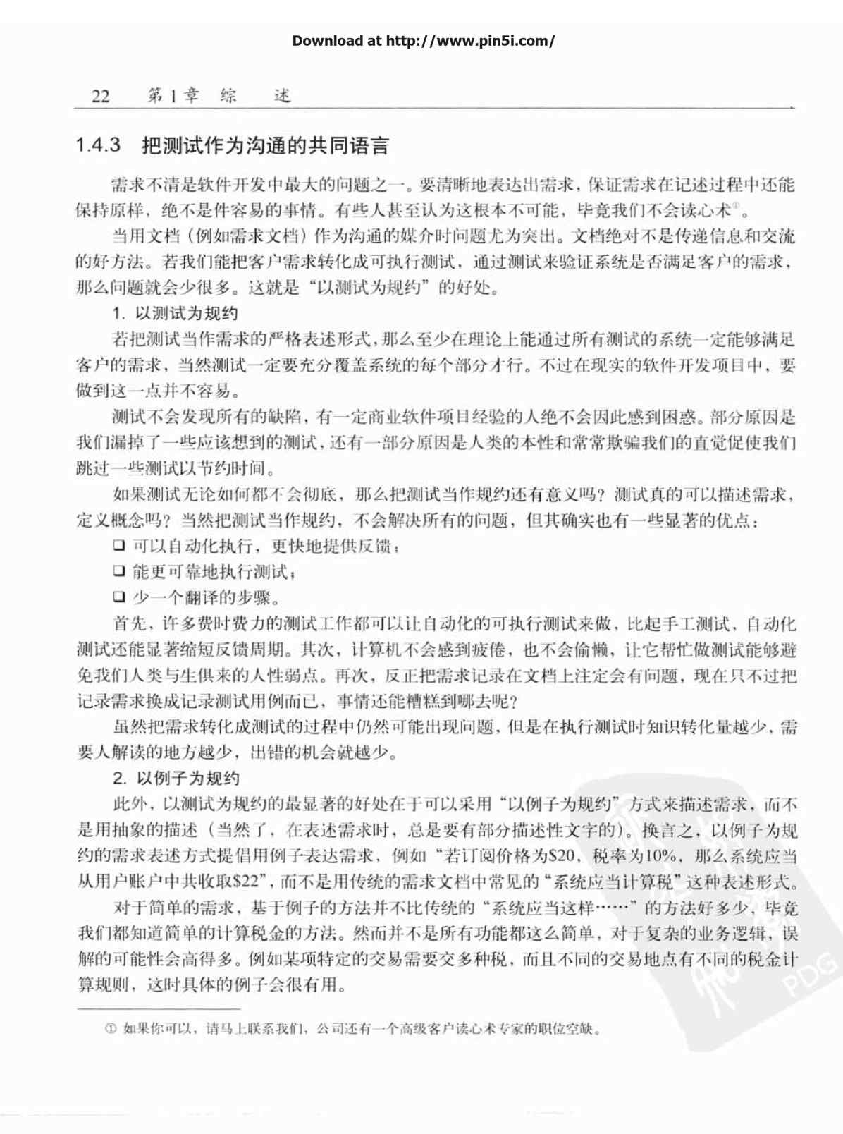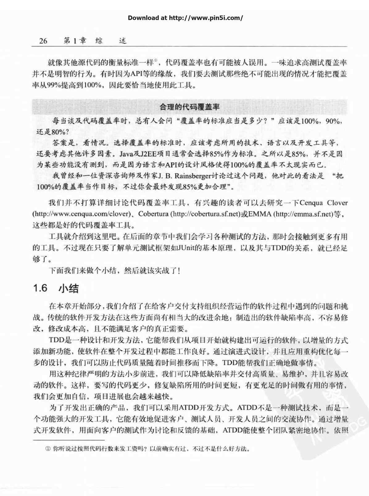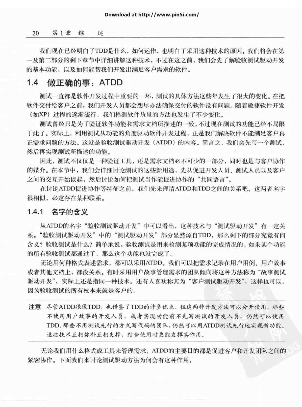 本站资深用户发布了最新的《测试驱动开发的艺术》文档,以下内容为预览,详细内容可下载阅读。 声明:本站所有文章,如无特殊说明或标注,均为本站原创发布。任何个人或组织,在未征得本站同意时,禁止复制、盗用、采集、发布本站内容到任何网站、书籍等各类媒体平台。如若本站内容侵犯了原著者的合法权益,可联系我们进行处理。