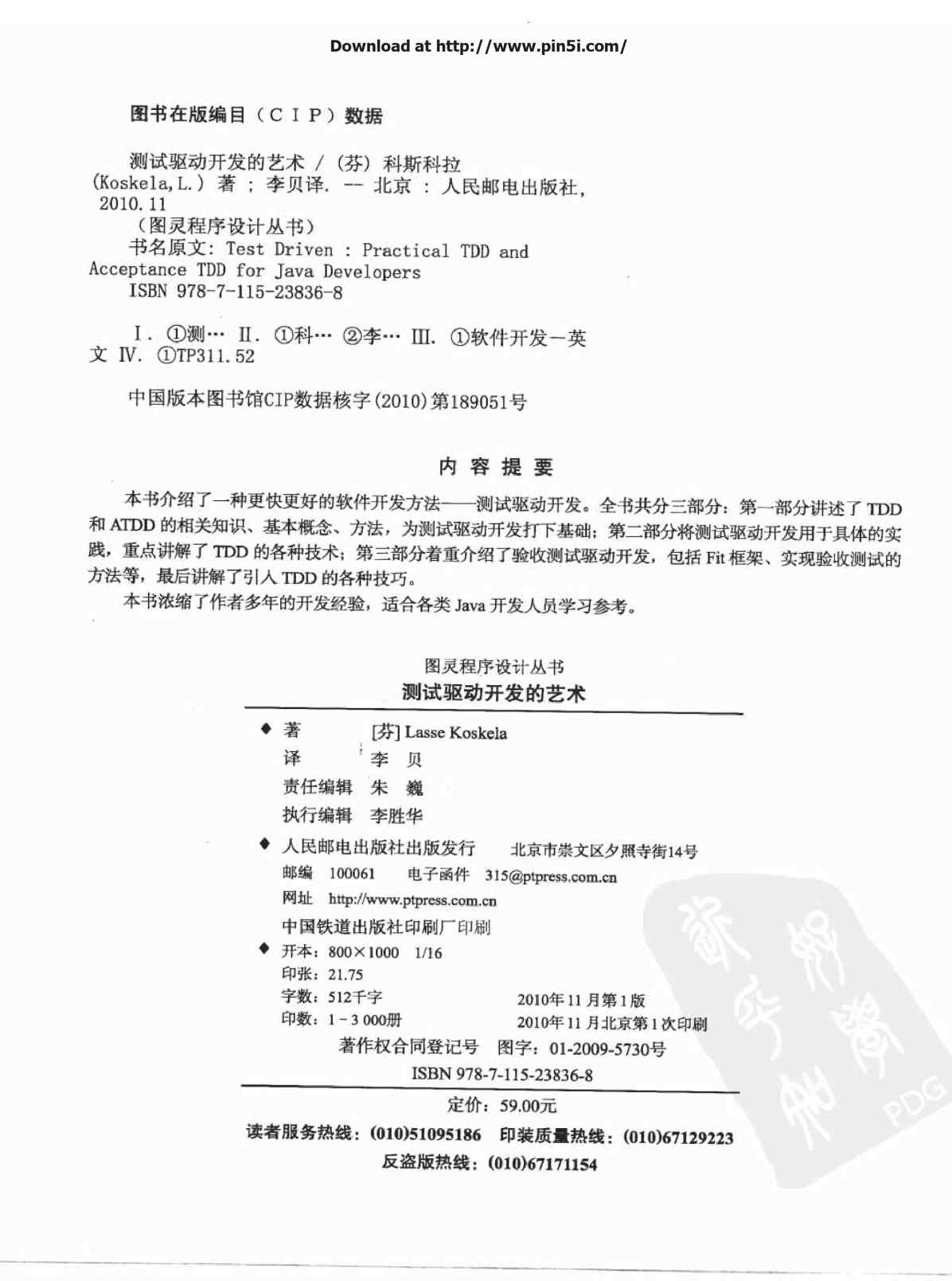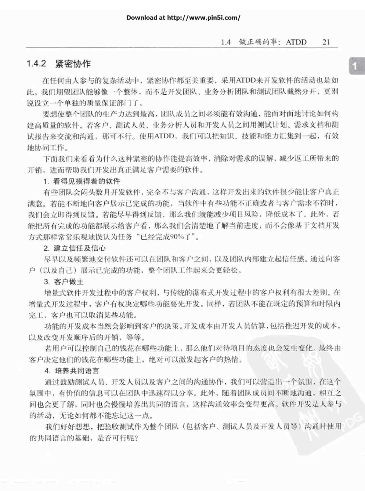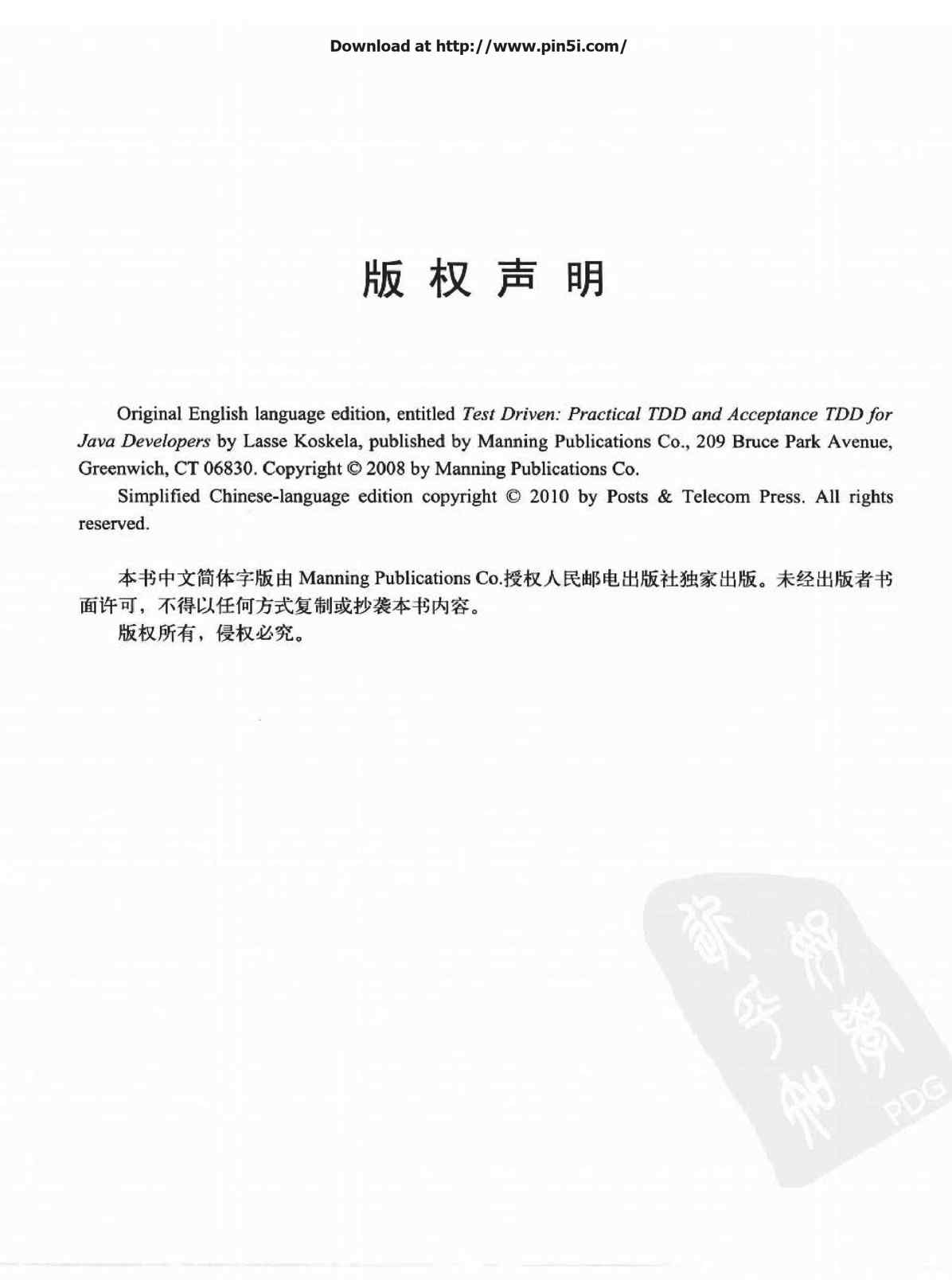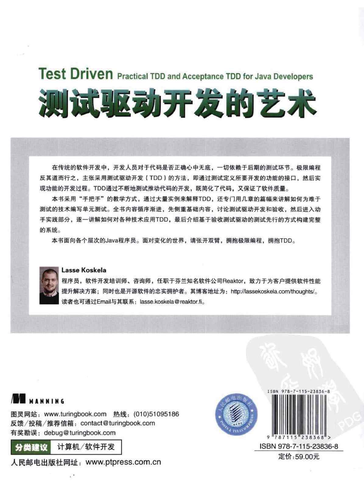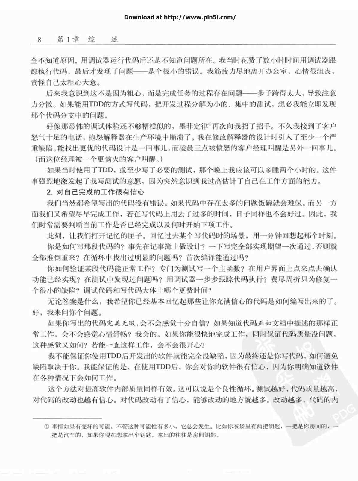 本站资深用户发布了最新的《测试驱动开发的艺术》文档,以下内容为预览,详细内容可下载阅读。 声明:本站所有文章,如无特殊说明或标注,均为本站原创发布。任何个人或组织,在未征得本站同意时,禁止复制、盗用、采集、发布本站内容到任何网站、书籍等各类媒体平台。如若本站内容侵犯了原著者的合法权益,可联系我们进行处理。