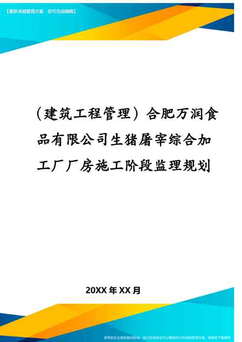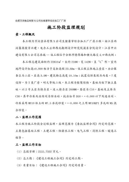 不久前,最新文档《建筑工程管理合肥万润食品有限公司生猪屠宰综合加工厂厂房施工阶段监理规划》全文正式在本站发布,感兴趣的用户可以下载阅读。 声明:本站所有文章,如无特殊说明或标注,均为本站原创发布。任何个人或组织,在未征得本站同意时,禁止复制、盗用、采集、发布本站内容到任何网站、书籍等各类媒体平台。如若本站内容侵犯了原著者的合法权益,可联系我们进行处理。