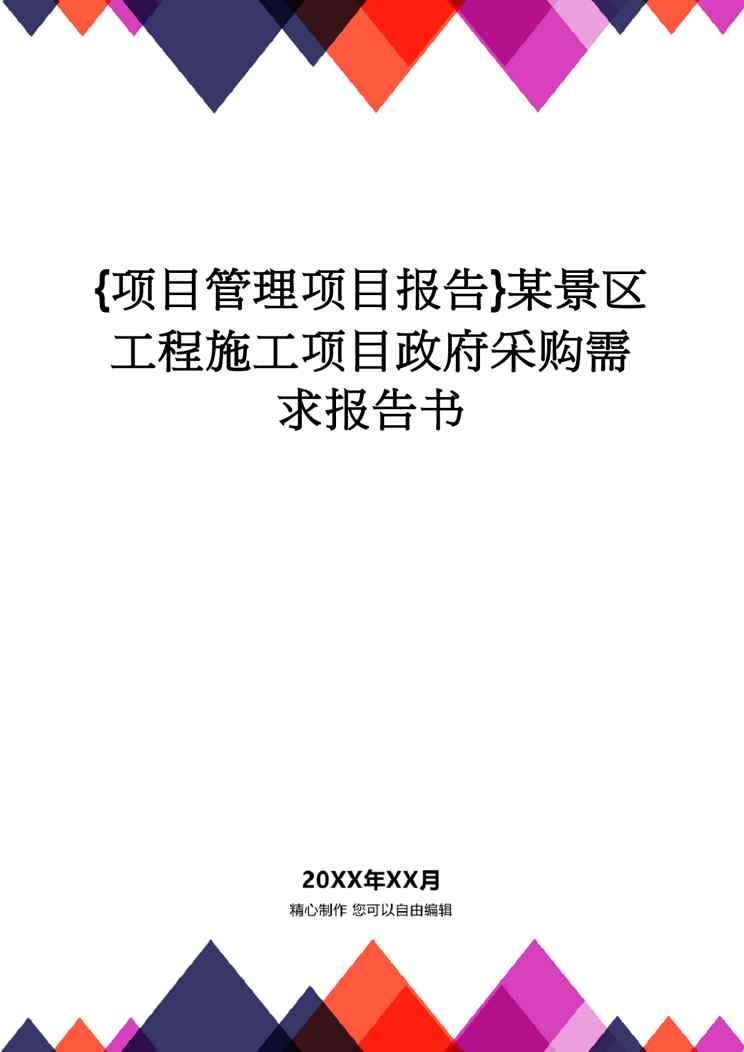 本站正式发布了《{项目管理项目报告}某景区工程施工项目政府采购需求报告书》文档,文档详细内容可下载阅读。 声明:本站所有文章,如无特殊说明或标注,均为本站原创发布。任何个人或组织,在未征得本站同意时,禁止复制、盗用、采集、发布本站内容到任何网站、书籍等各类媒体平台。如若本站内容侵犯了原著者的合法权益,可联系我们进行处理。