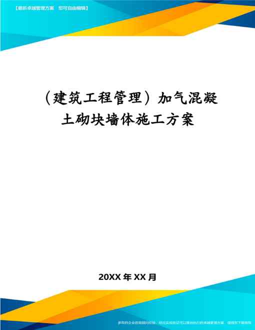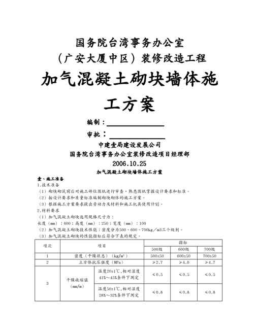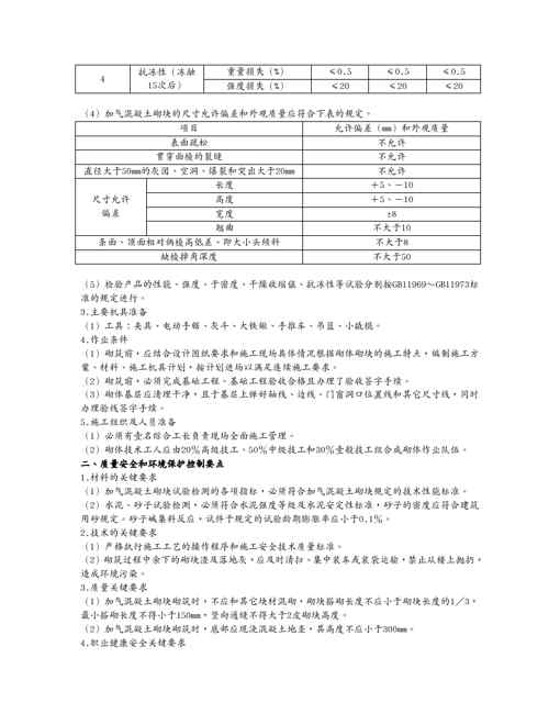 本站资深用户发布了最新的《建筑工程管理加气混凝土砌块墙体施工方案》文档,以下内容为预览,详细内容可下载阅读。 声明:本站所有文章,如无特殊说明或标注,均为本站原创发布。任何个人或组织,在未征得本站同意时,禁止复制、盗用、采集、发布本站内容到任何网站、书籍等各类媒体平台。如若本站内容侵犯了原著者的合法权益,可联系我们进行处理。