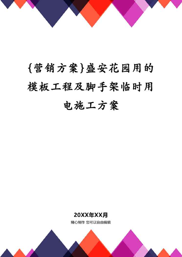 不久前,最新文档《{营销方案}盛安花园用的模板工程及脚手架临时用电施工方案》全文正式在本站发布,感兴趣的用户可以下载阅读。 声明:本站所有文章,如无特殊说明或标注,均为本站原创发布。任何个人或组织,在未征得本站同意时,禁止复制、盗用、采集、发布本站内容到任何网站、书籍等各类媒体平台。如若本站内容侵犯了原著者的合法权益,可联系我们进行处理。