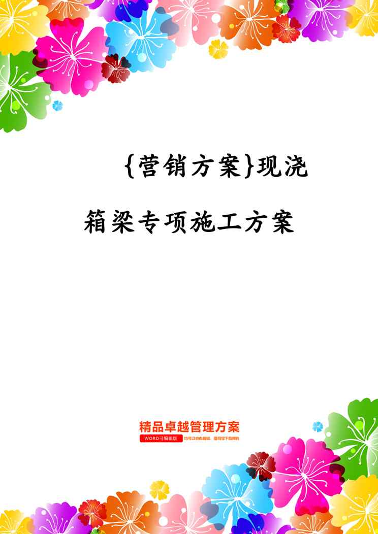 不久前,最新文档《{营销方案}现浇箱梁专项施工方案》全文正式在本站发布,感兴趣的用户可以下载阅读。 声明:本站所有文章,如无特殊说明或标注,均为本站原创发布。任何个人或组织,在未征得本站同意时,禁止复制、盗用、采集、发布本站内容到任何网站、书籍等各类媒体平台。如若本站内容侵犯了原著者的合法权益,可联系我们进行处理。