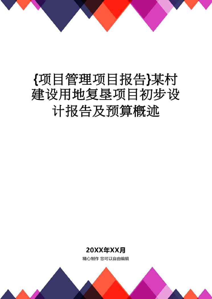 本站资深用户发布了最新的《{项目管理项目报告}某村建设用地复垦项目初步设计报告及预算概述》文档,以下内容为预览,详细内容可下载阅读。 声明:本站所有文章,如无特殊说明或标注,均为本站原创发布。任何个人或组织,在未征得本站同意时,禁止复制、盗用、采集、发布本站内容到任何网站、书籍等各类媒体平台。如若本站内容侵犯了原著者的合法权益,可联系我们进行处理。