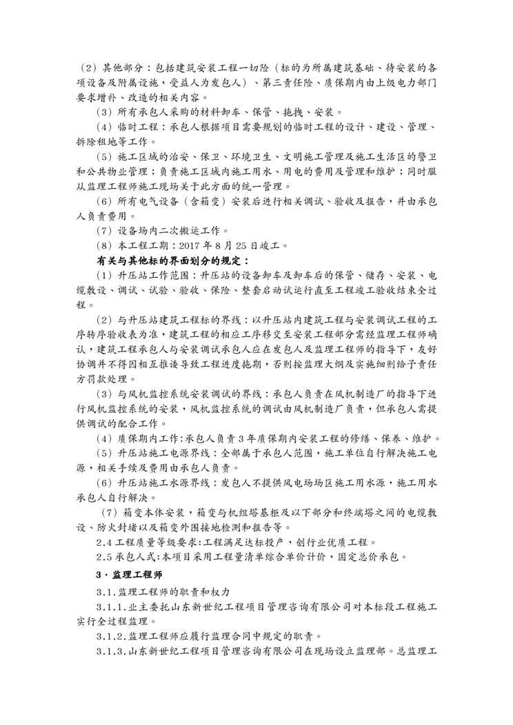 不久前,最新文档《(工程合同)升压站安装工程合同》全文正式在本站发布,感兴趣的用户可以下载阅读。 声明:本站所有文章,如无特殊说明或标注,均为本站原创发布。任何个人或组织,在未征得本站同意时,禁止复制、盗用、采集、发布本站内容到任何网站、书籍等各类媒体平台。如若本站内容侵犯了原著者的合法权益,可联系我们进行处理。
