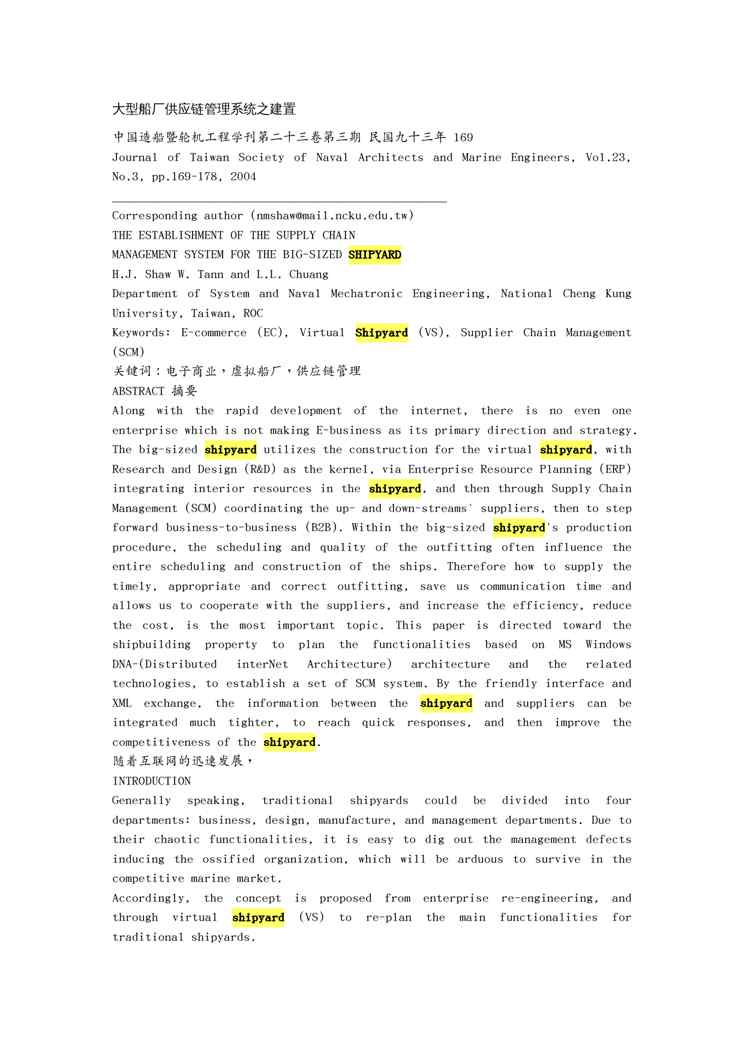 本站资深用户发布了最新的《(供应链管理)大型船厂供应链管理系统之建置》文档,以下内容为预览,详细内容可下载阅读。