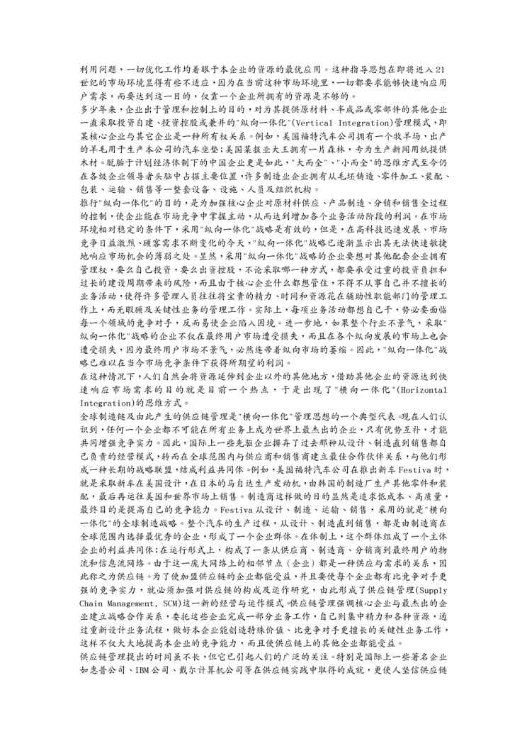 本站资深用户发布了最新的《(供应链管理)供应链管理1596456861》文档,以下内容为预览,详细内容可下载阅读。 声明:本站所有文章,如无特殊说明或标注,均为本站原创发布。任何个人或组织,在未征得本站同意时,禁止复制、盗用、采集、发布本站内容到任何网站、书籍等各类媒体平台。如若本站内容侵犯了原著者的合法权益,可联系我们进行处理。