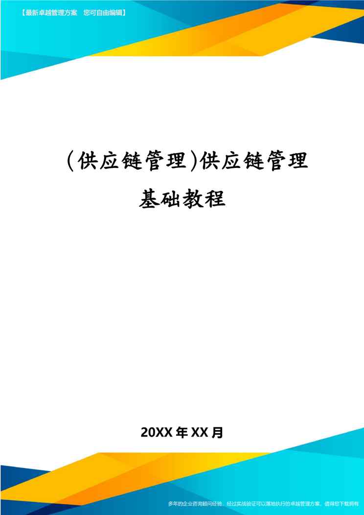 本站正式发布了《(供应链管理)供应链管理基础教程》文档,文档详细内容可下载阅读。 声明:本站所有文章,如无特殊说明或标注,均为本站原创发布。任何个人或组织,在未征得本站同意时,禁止复制、盗用、采集、发布本站内容到任何网站、书籍等各类媒体平台。如若本站内容侵犯了原著者的合法权益,可联系我们进行处理。