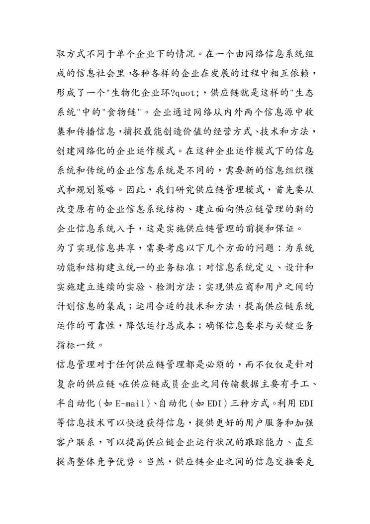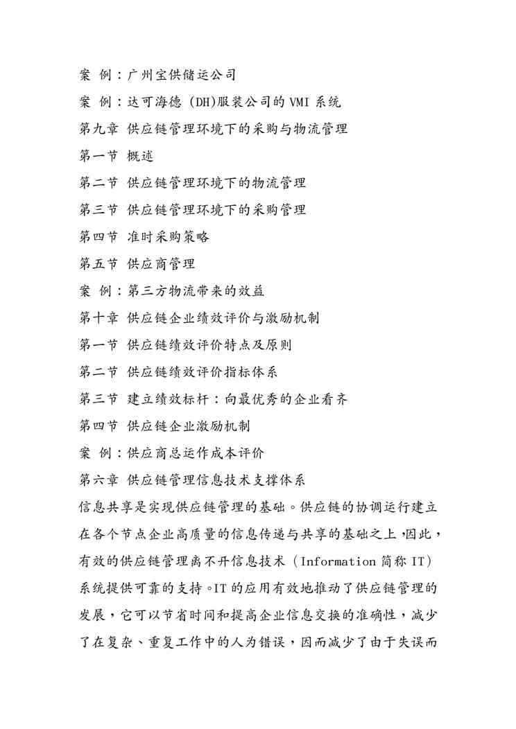 不久前,最新文档《(供应链管理)供应链管理培训讲义》全文正式在本站发布,感兴趣的用户可以下载阅读。 声明:本站所有文章,如无特殊说明或标注,均为本站原创发布。任何个人或组织,在未征得本站同意时,禁止复制、盗用、采集、发布本站内容到任何网站、书籍等各类媒体平台。如若本站内容侵犯了原著者的合法权益,可联系我们进行处理。