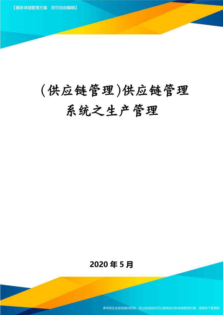 不久前,最新文档《(供应链管理)供应链管理系统之生产管理》全文正式在本站发布,感兴趣的用户可以下载阅读。 声明:本站所有文章,如无特殊说明或标注,均为本站原创发布。任何个人或组织,在未征得本站同意时,禁止复制、盗用、采集、发布本站内容到任何网站、书籍等各类媒体平台。如若本站内容侵犯了原著者的合法权益,可联系我们进行处理。