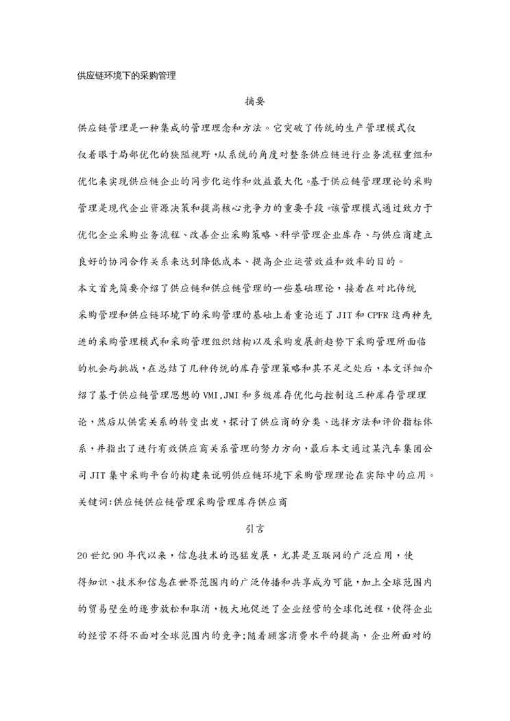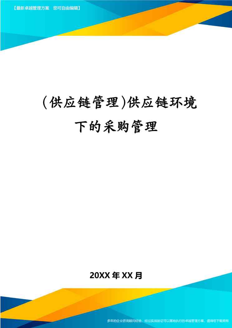 不久前,最新文档《(供应链管理)供应链环境下的采购管理》全文正式在本站发布,感兴趣的用户可以下载阅读。 声明:本站所有文章,如无特殊说明或标注,均为本站原创发布。任何个人或组织,在未征得本站同意时,禁止复制、盗用、采集、发布本站内容到任何网站、书籍等各类媒体平台。如若本站内容侵犯了原著者的合法权益,可联系我们进行处理。