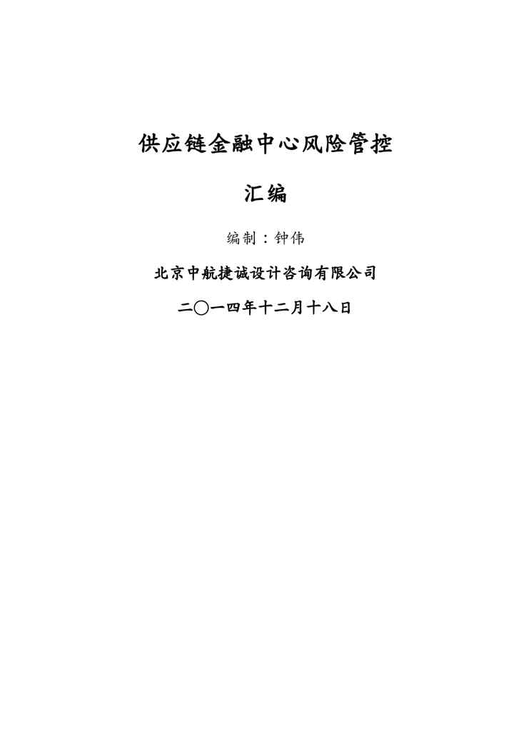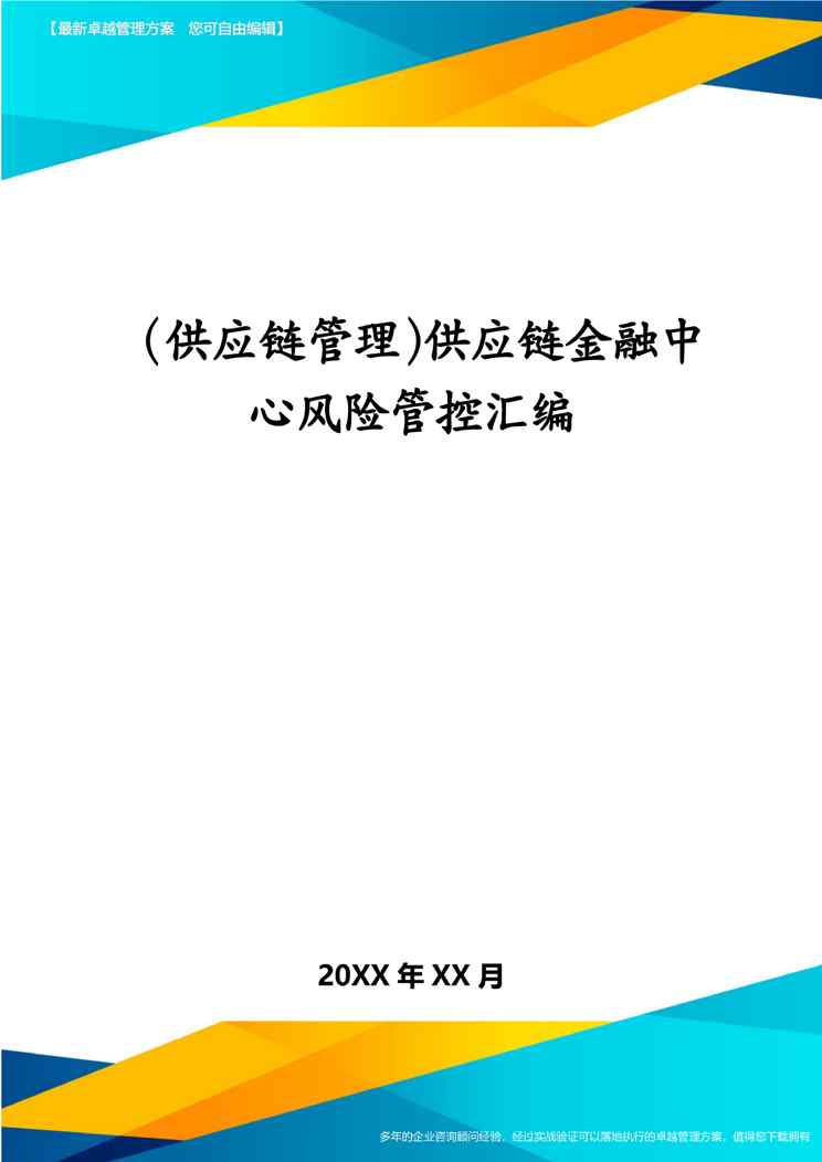 本站正式发布了《(供应链管理)供应链金融中心风险管控汇编》文档,文档详细内容可下载阅读。 声明:本站所有文章,如无特殊说明或标注,均为本站原创发布。任何个人或组织,在未征得本站同意时,禁止复制、盗用、采集、发布本站内容到任何网站、书籍等各类媒体平台。如若本站内容侵犯了原著者的合法权益,可联系我们进行处理。