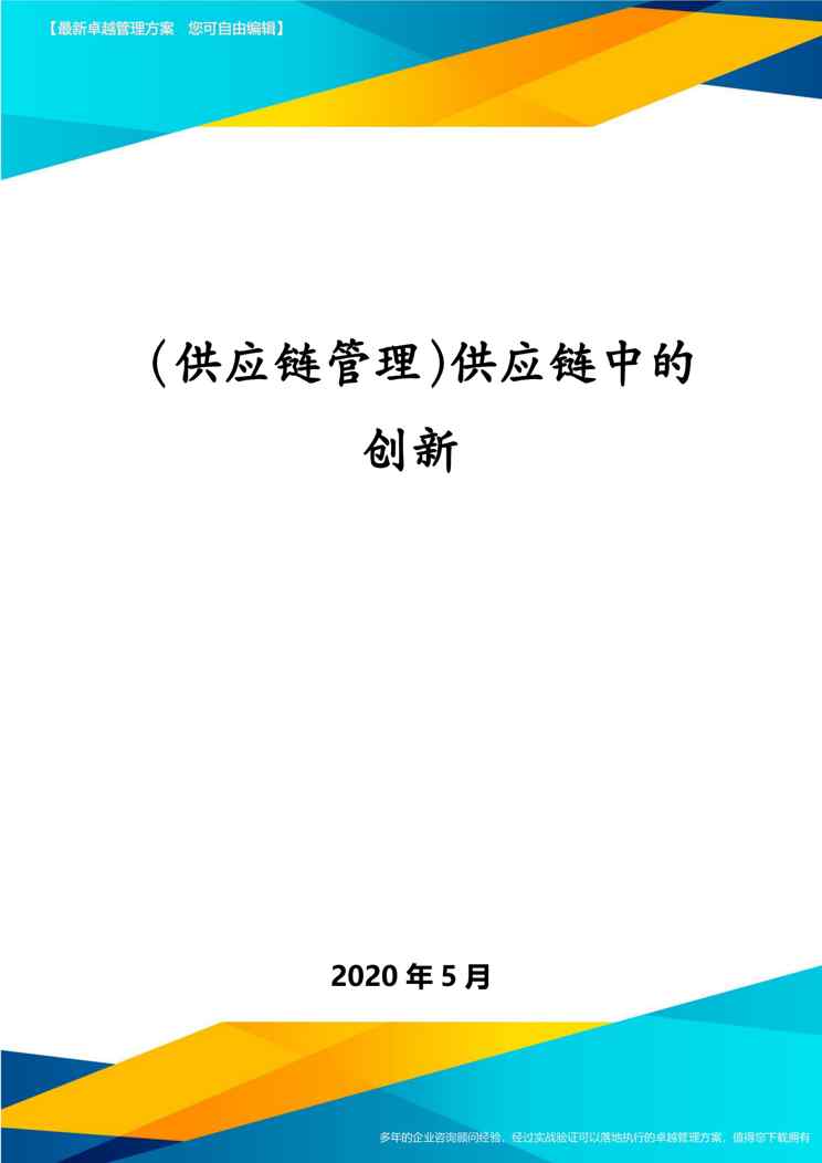 本站正式发布了《(供应链管理)供应链中的创新》文档,文档详细内容可下载阅读。 声明:本站所有文章,如无特殊说明或标注,均为本站原创发布。任何个人或组织,在未征得本站同意时,禁止复制、盗用、采集、发布本站内容到任何网站、书籍等各类媒体平台。如若本站内容侵犯了原著者的合法权益,可联系我们进行处理。