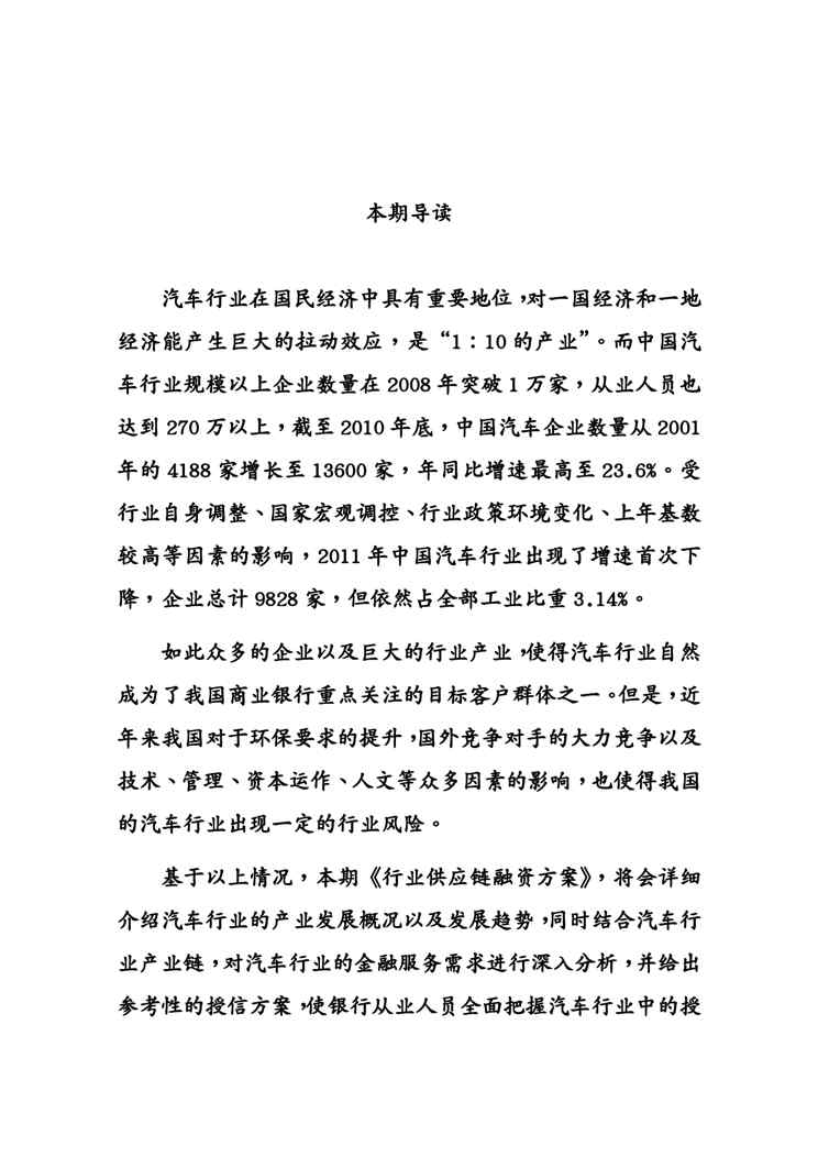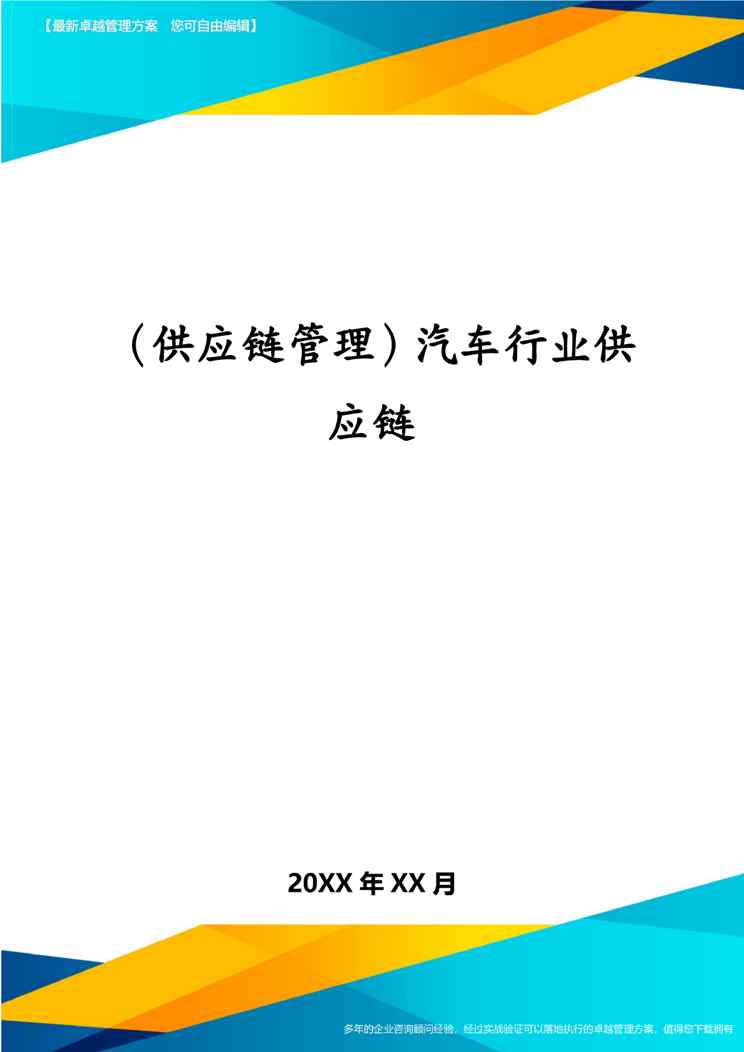 不久前,最新文档《(供应链管理)汽车行业供应链》全文正式在本站发布,感兴趣的用户可以下载阅读。 声明:本站所有文章,如无特殊说明或标注,均为本站原创发布。任何个人或组织,在未征得本站同意时,禁止复制、盗用、采集、发布本站内容到任何网站、书籍等各类媒体平台。如若本站内容侵犯了原著者的合法权益,可联系我们进行处理。