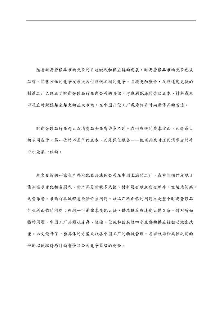 不久前,最新文档《(供应链管理)奢侈品供应链的特殊管理研究》全文正式在本站发布,感兴趣的用户可以下载阅读。 声明:本站所有文章,如无特殊说明或标注,均为本站原创发布。任何个人或组织,在未征得本站同意时,禁止复制、盗用、采集、发布本站内容到任何网站、书籍等各类媒体平台。如若本站内容侵犯了原著者的合法权益,可联系我们进行处理。