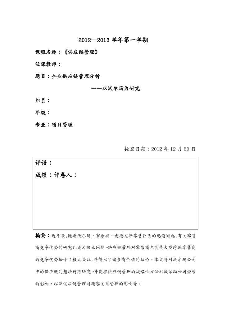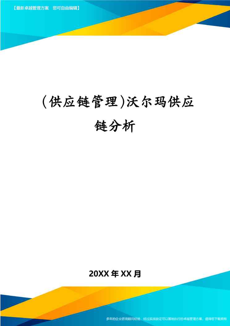 本站资深用户发布了最新的《(供应链管理)沃尔玛供应链分析》文档,以下内容为预览,详细内容可下载阅读。