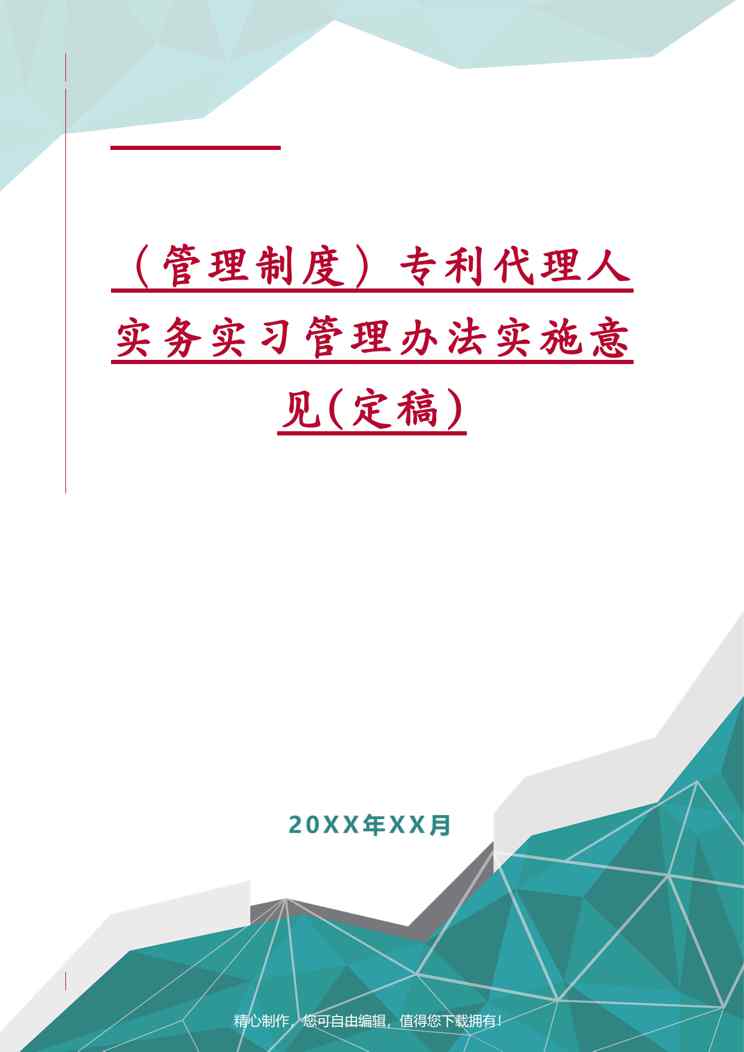 本站资深用户发布了最新的《(管理制度)专利代理人实务实习管理办法实施意见(定稿)》文档,以下内容为预览,详细内容可下载阅读。 声明:本站所有文章,如无特殊说明或标注,均为本站原创发布。任何个人或组织,在未征得本站同意时,禁止复制、盗用、采集、发布本站内容到任何网站、书籍等各类媒体平台。如若本站内容侵犯了原著者的合法权益,可联系我们进行处理。